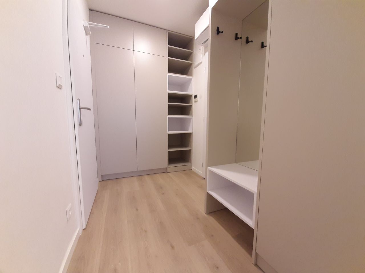Prenajíma sa zariadený: vo vstupnej chodbe sú umiestnené vstav. skrine, v izbe spojenej s kuch. časťou je SMART TV, vstav. nábytok na mieru, jedálenský stolík so stoličkami, kuch. linka so indukčnou varnou doskou, mikrovlnka, zabudovaná chladnička, zabudovaná práčka, dvojposteľ, vstav. skrinky.........