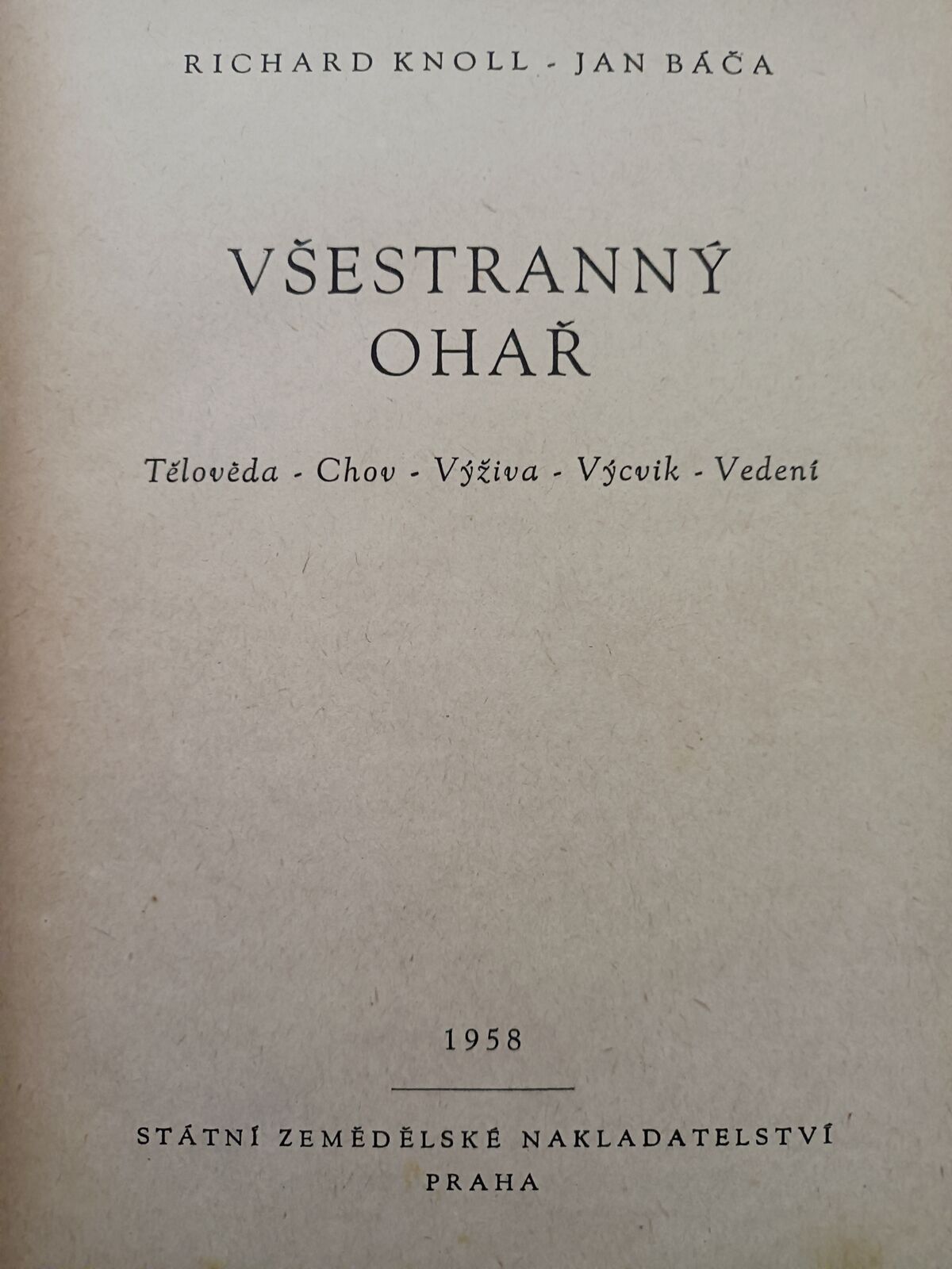 Všestranný ohař - Tělověda - chov - výživa - výcvik - vedení rok vydání 1958, cena dohodou.