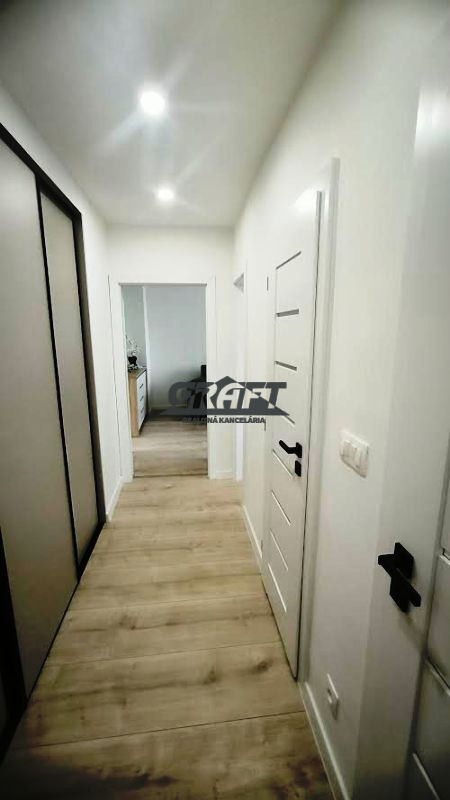 V rámci REKONŠTRUKCIE boli vymenené: nové biele vstupné vchodové bezpečnostné dvere s 15bodovým uzamykaním, nové biele drevené interiérové drevené dvere s tenučkými pásikmi s zasklením+ drevené zárubne a moderné čierne hranaté kľučky, nové atypické kvalitné plávajúce laminátové podlahy tvrdosti 8mm. Kúpeľňa: nová vaňa + nová batéria, nová kúpeľňová skrinka s umývadlom a batériou so zrkadlom i osvetlením, nové veľkoformátové moderné obklady i veľkoformátová dlažba, bodové osvetlenie. Nové samostatné moderné WC. Plastové okná a nové žalúzie.