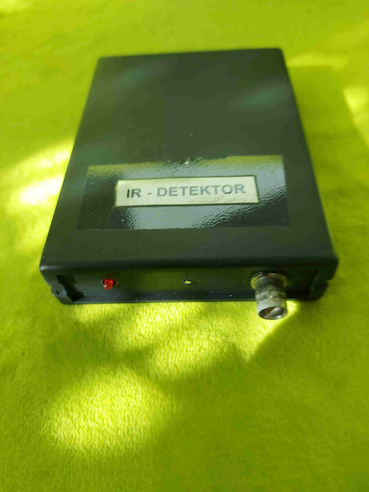 Tento detektor identifikuje závady na vysílači dálkového ovladače ,nebo i jiných infra vysilačů ,to znamená jeho funkci a to -vysílá nevysílá a podrobnou identifikaci vysílaných dat zjistíme osciloskopem neno blikáním diody. Závadu vysílá- vevysílá identifikuje světelná dioda led, která bliká v rytmu zvolených tlačítky dat, podtobnější závadu vysílaných dat kontrolujeme pomocí konektoru BNC, kabelu a osciloskopu.Napájení je pomocí externího zdroje 9-12V ,který není součástí dodávky.Možno dohodnout dodání.Přístroj je vhodný na kontrolu všech zařízení s infraovládáním.Zobrazí jednotlivé bity.