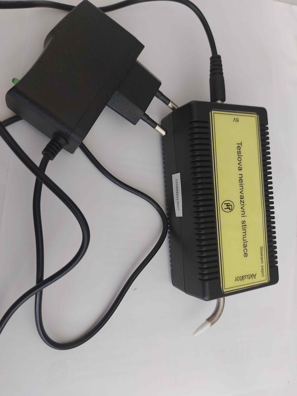 Tento přístroj je ve švícarsku patentován a je vyroben pro použití stimulace akupunkturních bodů na těle člověka i zvířat. V přístroji je použita nejnovější dostupná technologie pro vyžití dialektrické anteny v kmitočtovém pásmu 60ti GHz.V přístroji je použit vynález Tesly pro použití specielního generátoru.Jsou zde využity funkce vlnovodů a filtrů v kmitočtovém pásmu 60ti GHz.Parametry v blízkosti dialektrické anteny ( 1cm od hrotu) 1998V/m a 5,4uT . Ve vzdálenosti již 30cm tyto parametry zanikají .Po zapnutí přístroj vydává jemně praskavý zvuk.Tlačítko přístroje zap.po proběhnutí samotestu ( 2 sec.) svítí a přístroj je připraven k použití.Samotest proběhne ihned po zapojení napájecí jednotky 6V.Všechny funkce přístroje kontrojuje procesor.Přístroj může při zapnutí rušit audiovizuální techniku.