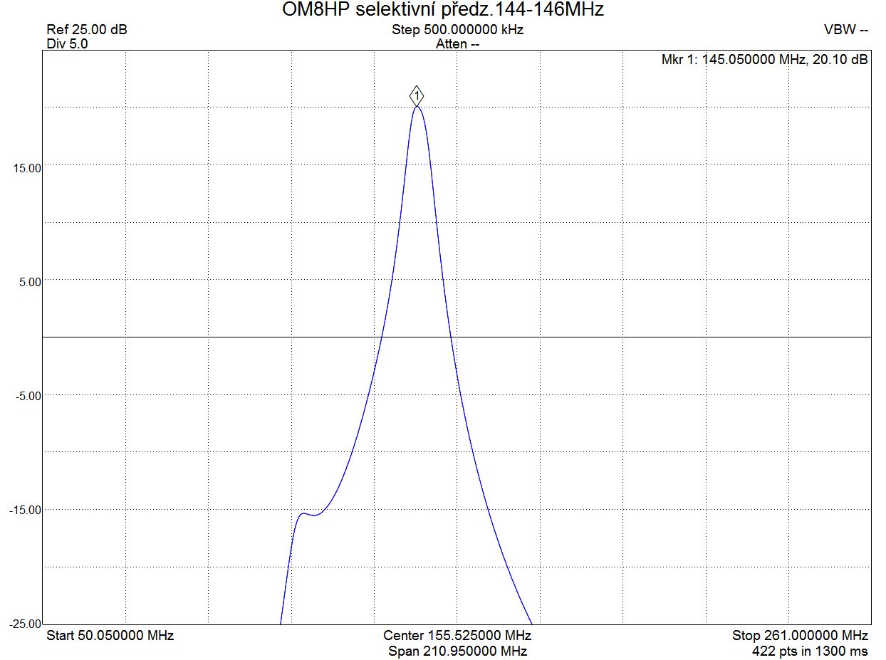 Vyrábím Anténní selektívný předzesilovač pro 2m s tranzistorem AFT53189 s těmito parametry: VSWR vstupu 1,4 !!// G21,5dBm // NF0,8//IP3 22dBm//. Na výstupu je tříobvodový Halical filtr-ostrá šíře pásma 2MHz, grafy z měření zašlu mailom . Napájení na požádání po kabelu(koax),normálně zapojeno externí . Unap 8-14v/140mA.Vnitřní stabilizátor zajišťuje napětí pro tranzistor 5V.Konektory jsou SMA, na vstupu je zapojeno ochranné miniaturní relé ,které při vypnutém předzesilovači zkratuje vstup krátkou cestou na zem. (výroba OM8HP). Vše nastaveno na profipracovisku. Krabička je z titanzinku a šroubovaná horní a dolní část. Rozměry jsou a95x45x30mm. Kvalita a pečlivá práce! Vše SMD technologií.