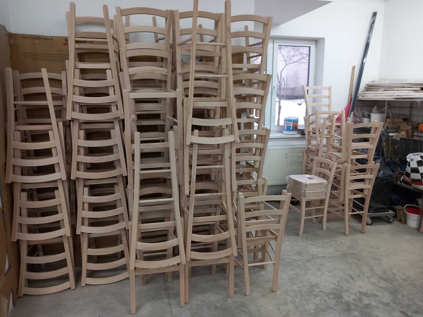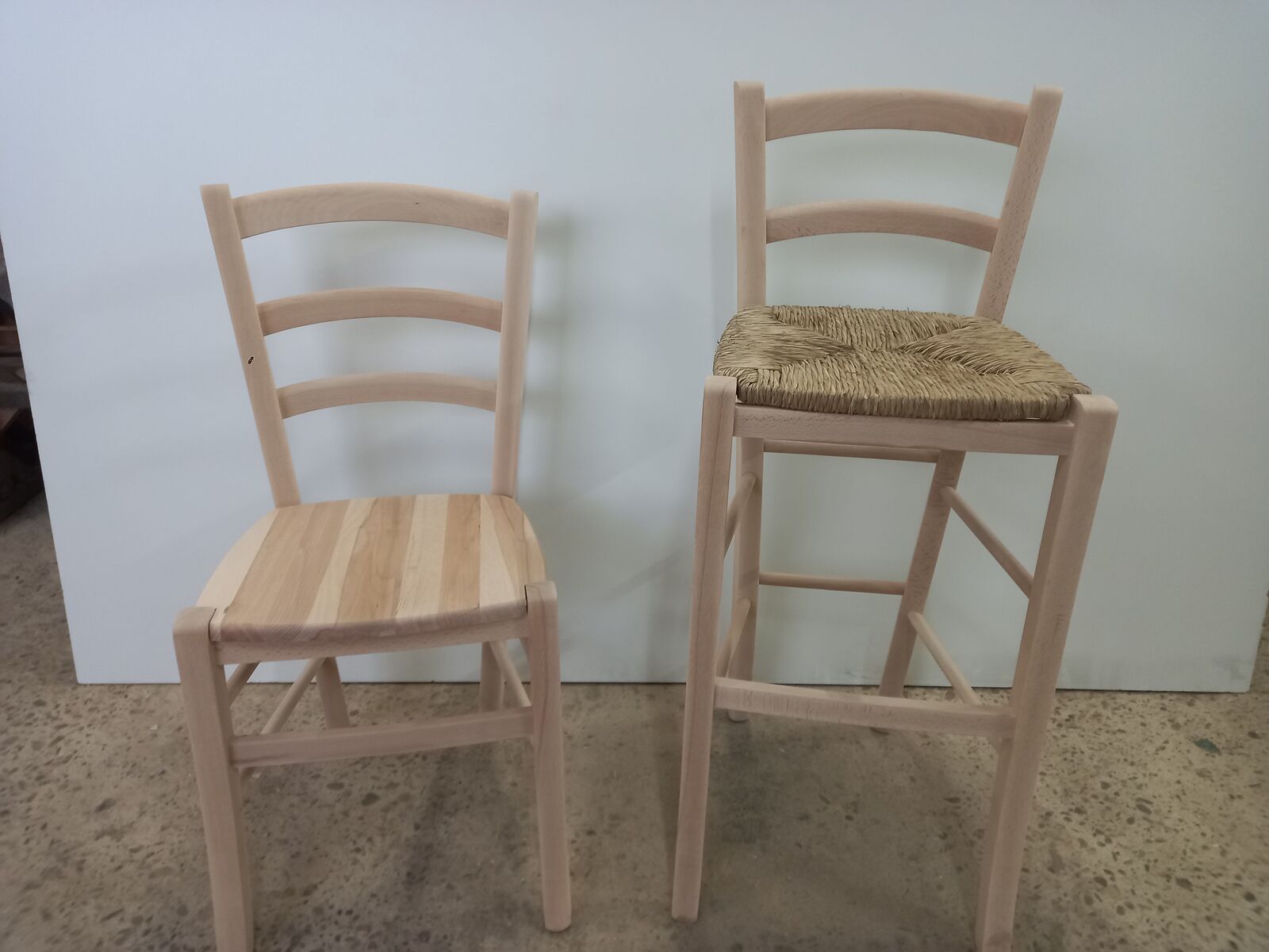 Predám silné bukové stoličky v surovom stave vhodné do reštaurácie či krčmy. Ponúkam aj barové stoličky rovnakého štýlu .K stoličkám je možné si dokúpiť bukový sedák alebo vypletaný sedák. Výška sedenia u barovej je 72 cm a celková výška je 101 cm, výška sedenia klasickej stoličky je 46 cm a celková výška klasickej stoličky je 88 cm. Približne raz za mesiac robím rozvoz po Slovensku, takže Vám stoličky vieme doviezť. Stoličky máme prevažne skladom. K stoličkám Vám vieme vyrobiť na mieru aj stôl s masívnym podnožím a dyhovanou vrchnou doskou. Stoly sú lepené hrubými kolíkmi a vystužené zo spodnej strany šikminou. Viac informácií len na telefónnom čísle : 0918 413 950