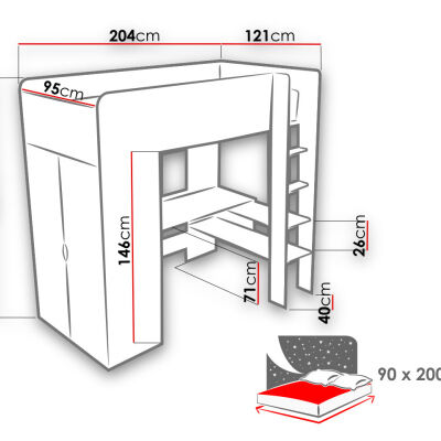 v cene zostavy: jedno lôžko, stôl, skriňa, rebrík
