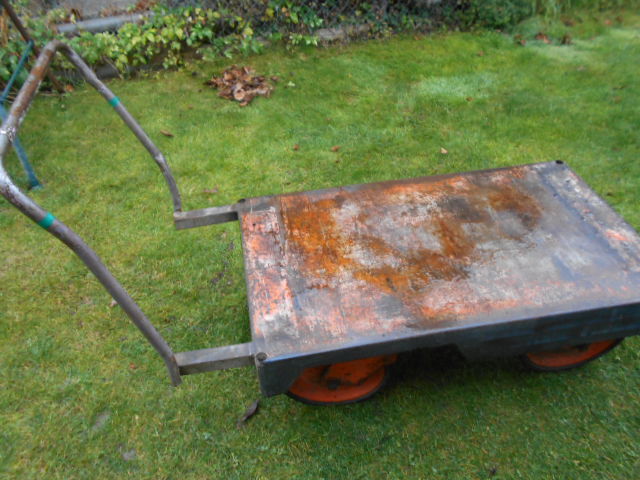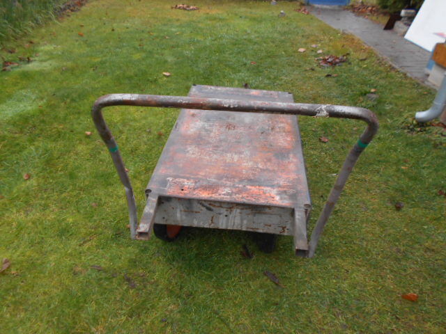 Doska vozíka je kovová. Hrúbka rámovej konštrukcie je 4 mm. Madlo je pevne priskrutkované k rámu - neuvoľňuje sa. Plošinový vozík je vhodný do skladov, výrobných priestorov a do akéjkoľvek ťažkej prevádzky. Univerzálne použitie. N.Zámky. Cena 80€.