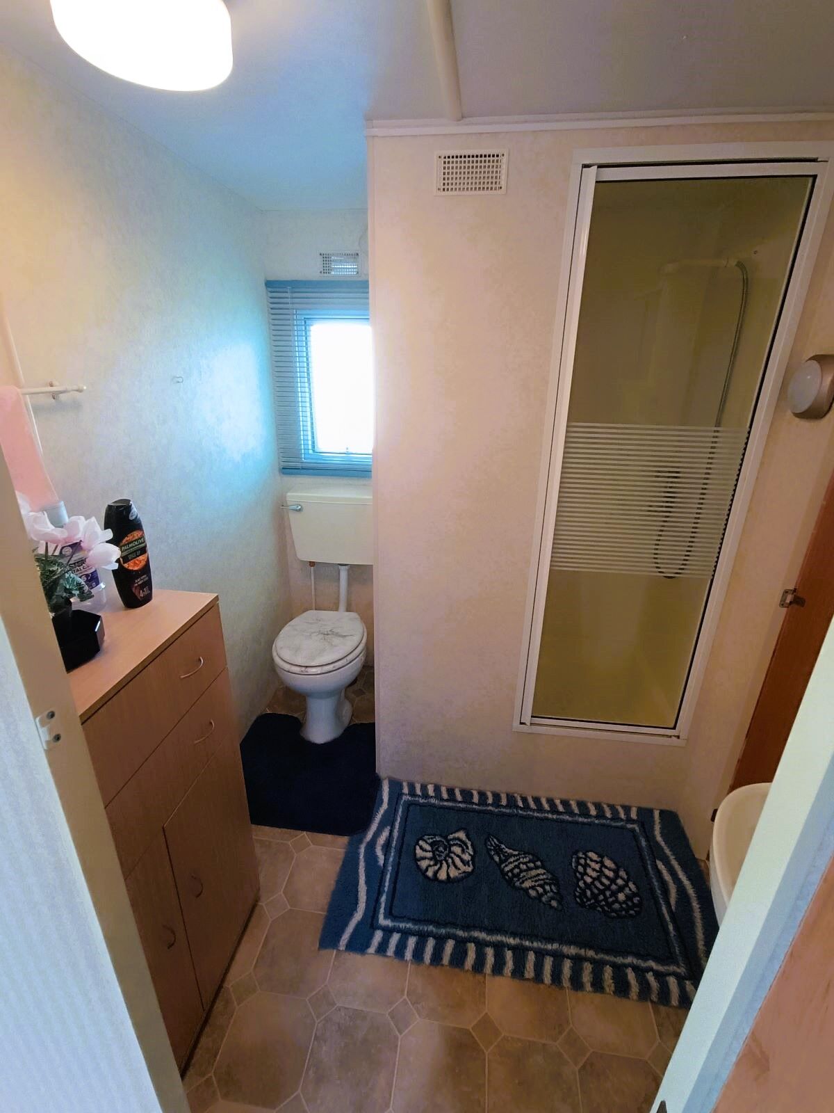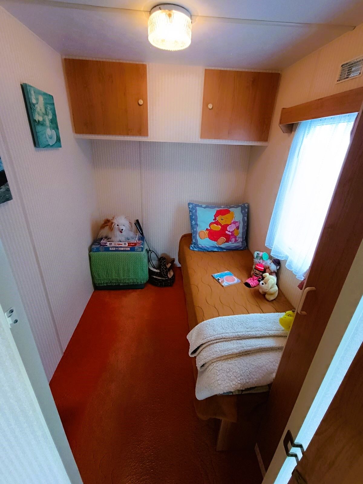 Domček ponúka dve spálne, obe vybavené posteľami, šatníkovými skriňami a ďalšími úložnými priestormi. Priestranná kúpeľňa spoločná s WC umožňuje umiestnenie menšej práčky a disponuje aj druhým prístupom priamo do spálne.