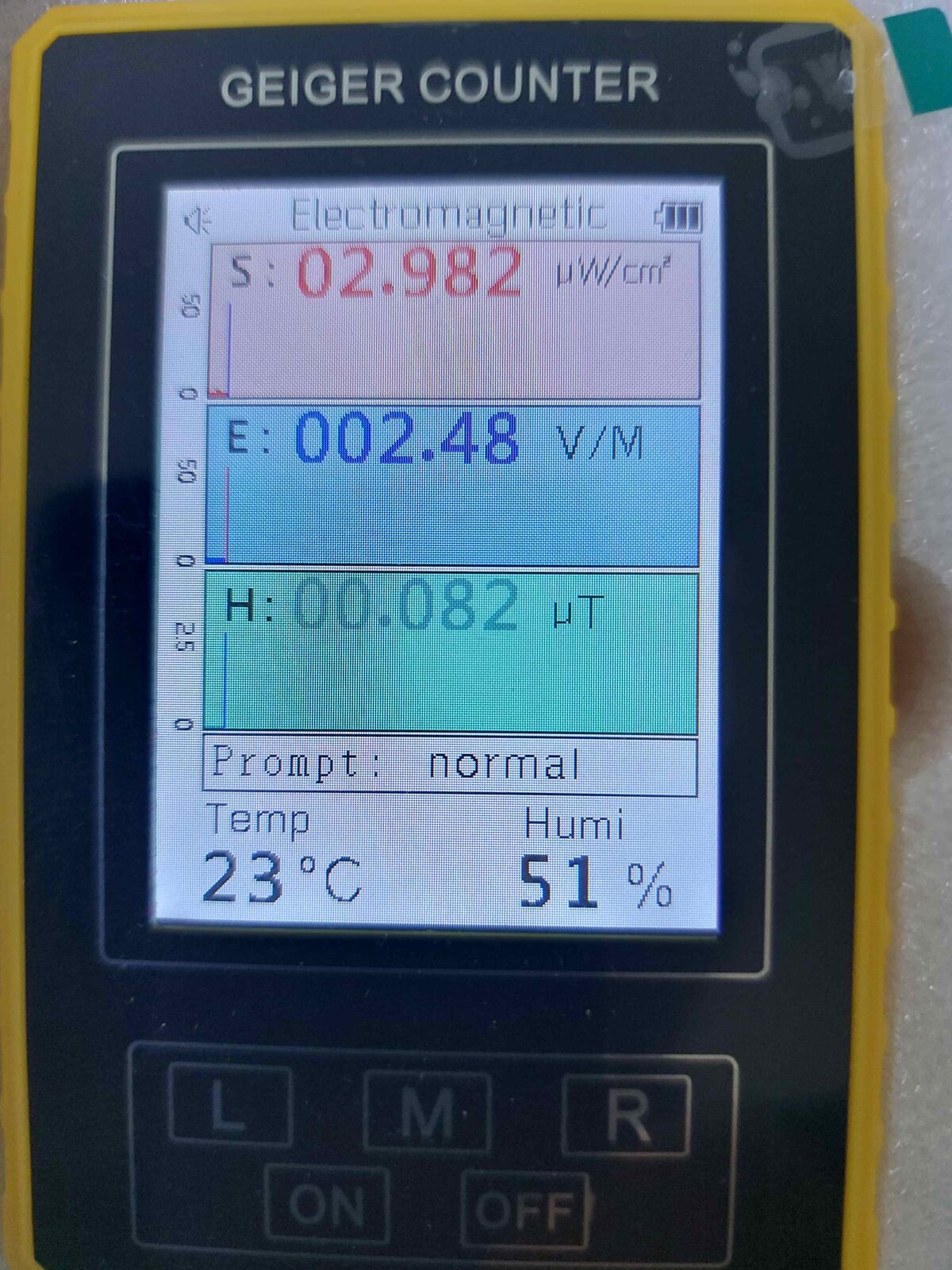 Tento digitálněgrafický radiační detektor o rozměrech 70 x 100 x 20mm s číselným a grafickým barevným displejem je napájen ze tří tužkových baterií ,nebo pokud jsou použity akumulátory lze je nabíjet z usb konektoru.Přístroj měří i teplotu a vlhkost automaticky ,dále měří elektronické pozadí ,to znamená velikost vyzařování elektronických a telekomunikačních zařízení a antén.Dozimetr má i zvukovou signalizaci dopadajících částic s možností regulace hlasitosti .K dozimetru je dodávaná přehledná příručka v několika jazycích.Přístroj umí automaticky jednoslovně vyhodnotit naměřenou hodnotu písemě pod diplejem.S přístrojem se měří přehledne a rychle.Přístroj se dodává v otřesuvzdorném pouzdře .