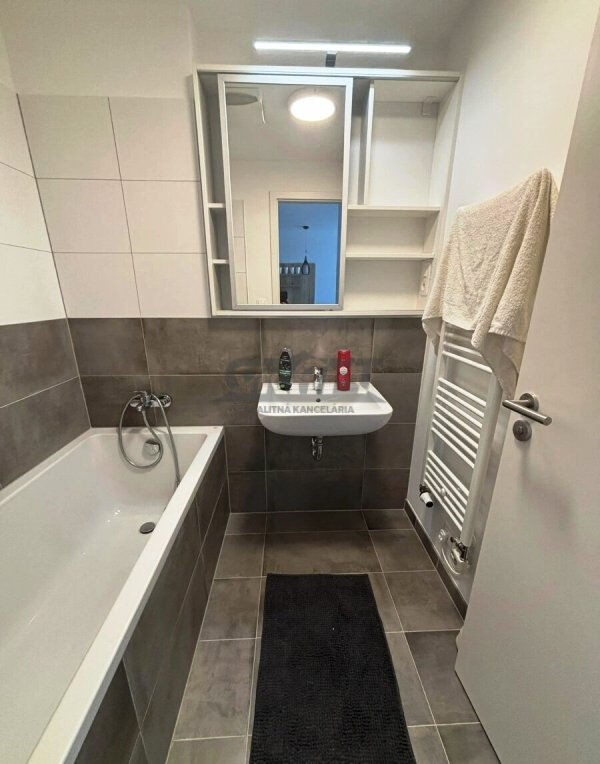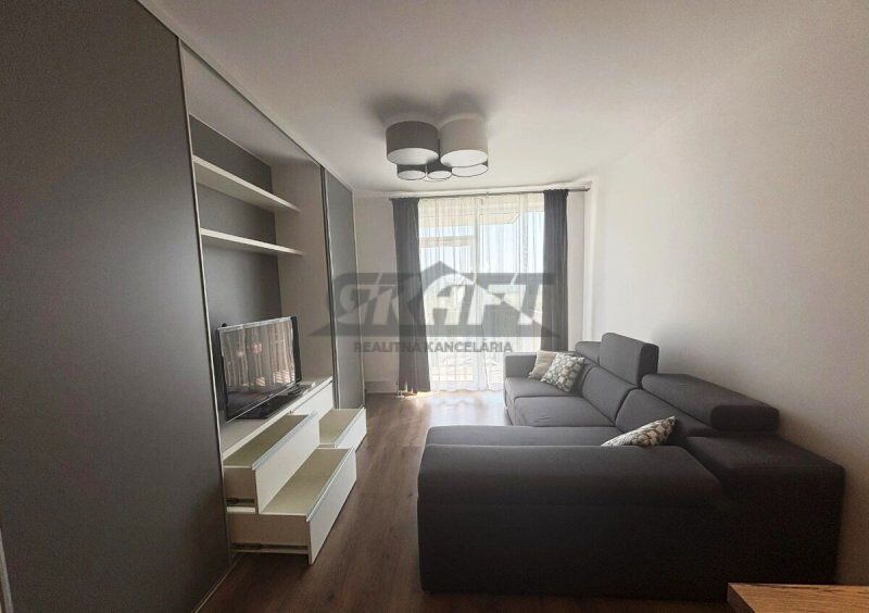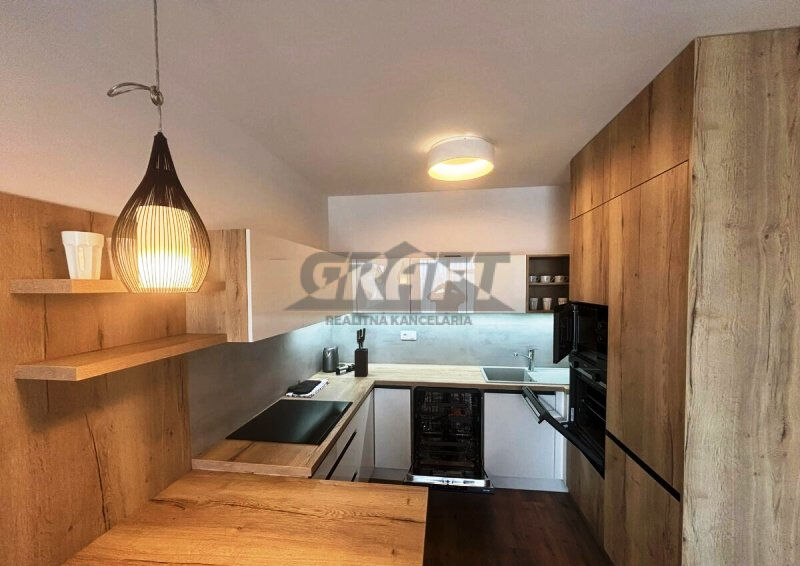 Obývacia izba je spojená s kuchyňou a predsieňou. Spálňa je samostatná ako aj kúpeľňa a WC, tak ako je to zobrazené na priloženom výkrese. Moderná kuchynská časť je komplet vybavená kvalitnými elektrospotrebičmi (AEG, Siemens, Bosch) ako aj všetkým potrebným (riad, hrnce, príbory…). Kúpeľňa je vybavená vaňou a elektrickým radiátorom s termostatom. Samostatné WC je so závesným WC a autom. odsávaním. Práčka je situovaná v predsieni. Byt je vybavený nadčasovým osvetlením jednotlivých miestností, modernou sedacou súpravou s odkladacím priestorom a príležitostným spaním. V spálni je samozrejmosťou king size posteľ so zdravotnými matracmi a lamelovými roštami.