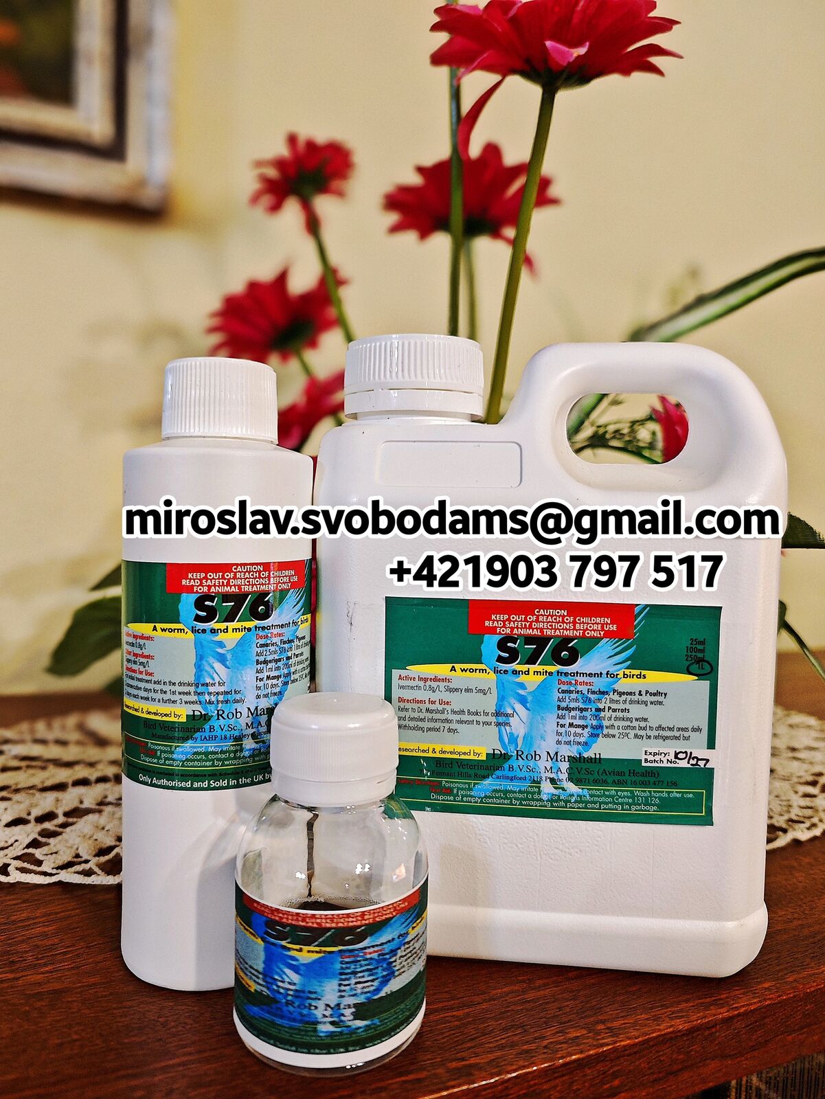 Ponúkam originálny prípravok S76 – osvedčené riešenie na odčervenie a ochranu vtáctva pred vnútornými a vonkajšími parazitmi (roztoče pľúcnych vakov, peria, krvi, vápenka a pod.).
