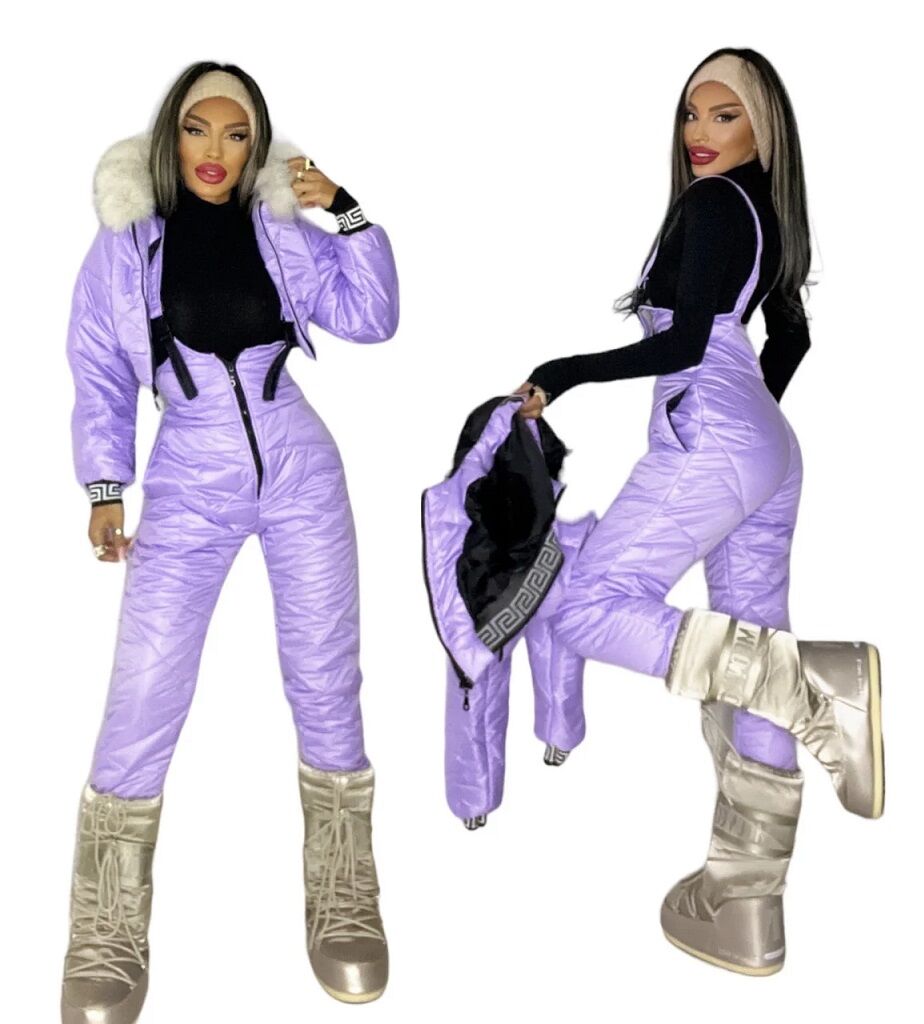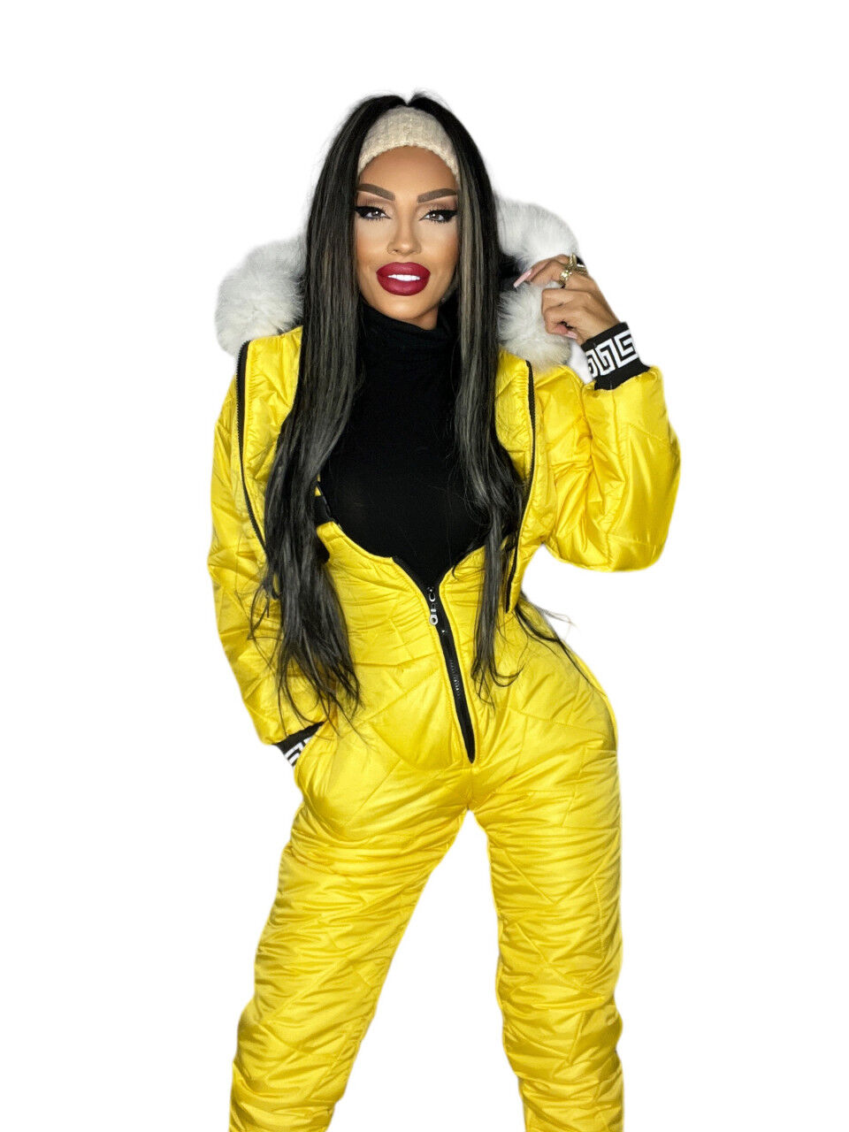 Stylove damske lyziarske supravy a kombinezy s kozusinou a kapucnou. Vyrobene z nepremokaveho materialu.
