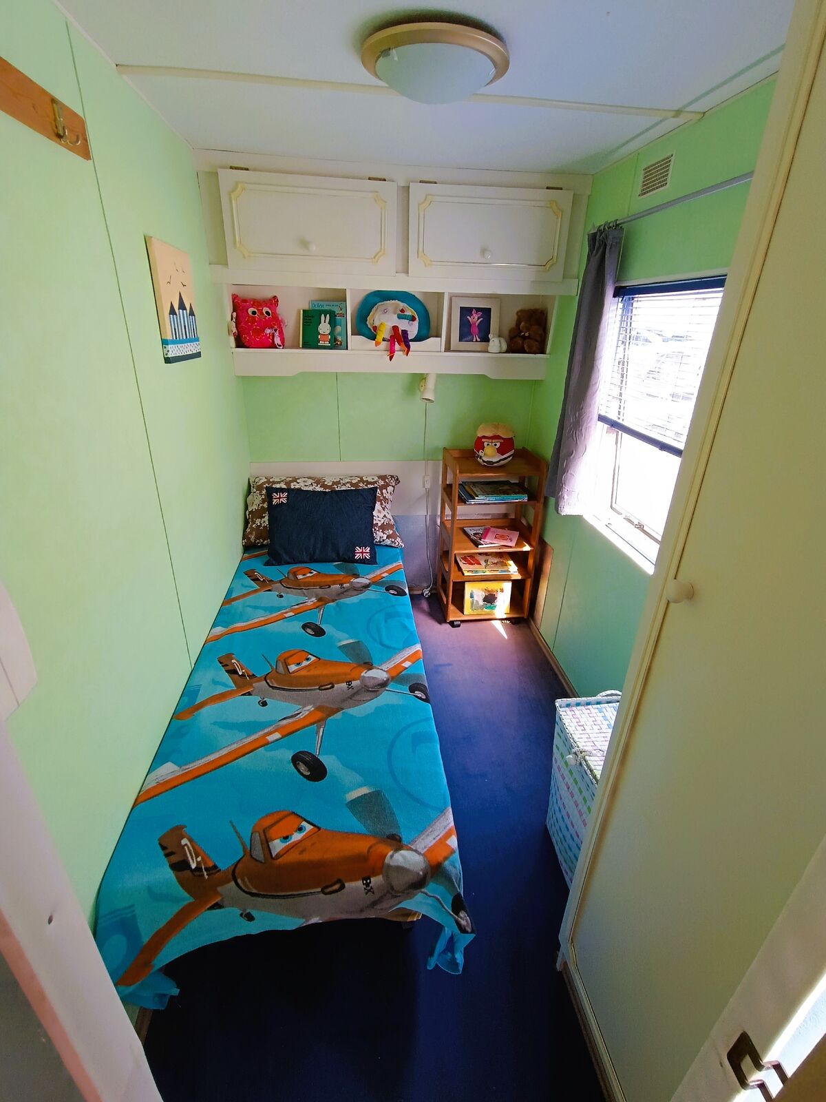 Ponúkam útulný euro mobilný domček s jedným vstupom, perfektný na sezónne využitie. Dispozícia je praktická a ponúka dostatok úložných priestorov.