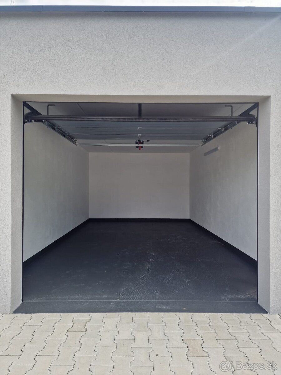 Ponúkam k dlhodobému prenájmu novostavby garáží (dve garáže, skolaudované) v lokalite ul. Horská, Partizánske, časť Šípok. Každá garáž má elektronickú bránu aj mechanické ovládanie brány (v prípade výpadku el. energie), ďalej 2 x zásuvku 220v a prípravu na zásuvku k elektromobilu. Garáže (rozmery plochy 6 m x 3,5 m) sú 3 a 4 v poradí vpravo pri vjazde z ulice Horská. Steny garáže sú z pórobetónu a omietnuté, strop je betónový monolit. Garáž je vhodná aj pre garážovanie motorky, pre vyznavačov bicyklovej turistiky (v tesnej blízkosti cyklotrasy a lesa) alebo ako sklad (je odvetrávaná). Okrem jedného miesta na parkovanie v garáži je ďalšie odstavné miesto pred garážou (na fotke). Ako benefit má garáž nad vstupom svetlomet verejného osvetlenia a je monitorovaná funkčným kamerovým systémom. Pred garážou je kanál vhodný na zbežné umývanie vozidla. Garáže, príjazdy k nim a okolie podliehajú zazmluvnenej správe a údržbe. Cena nájmu je 5,7 eur/m2 plochy garáže.