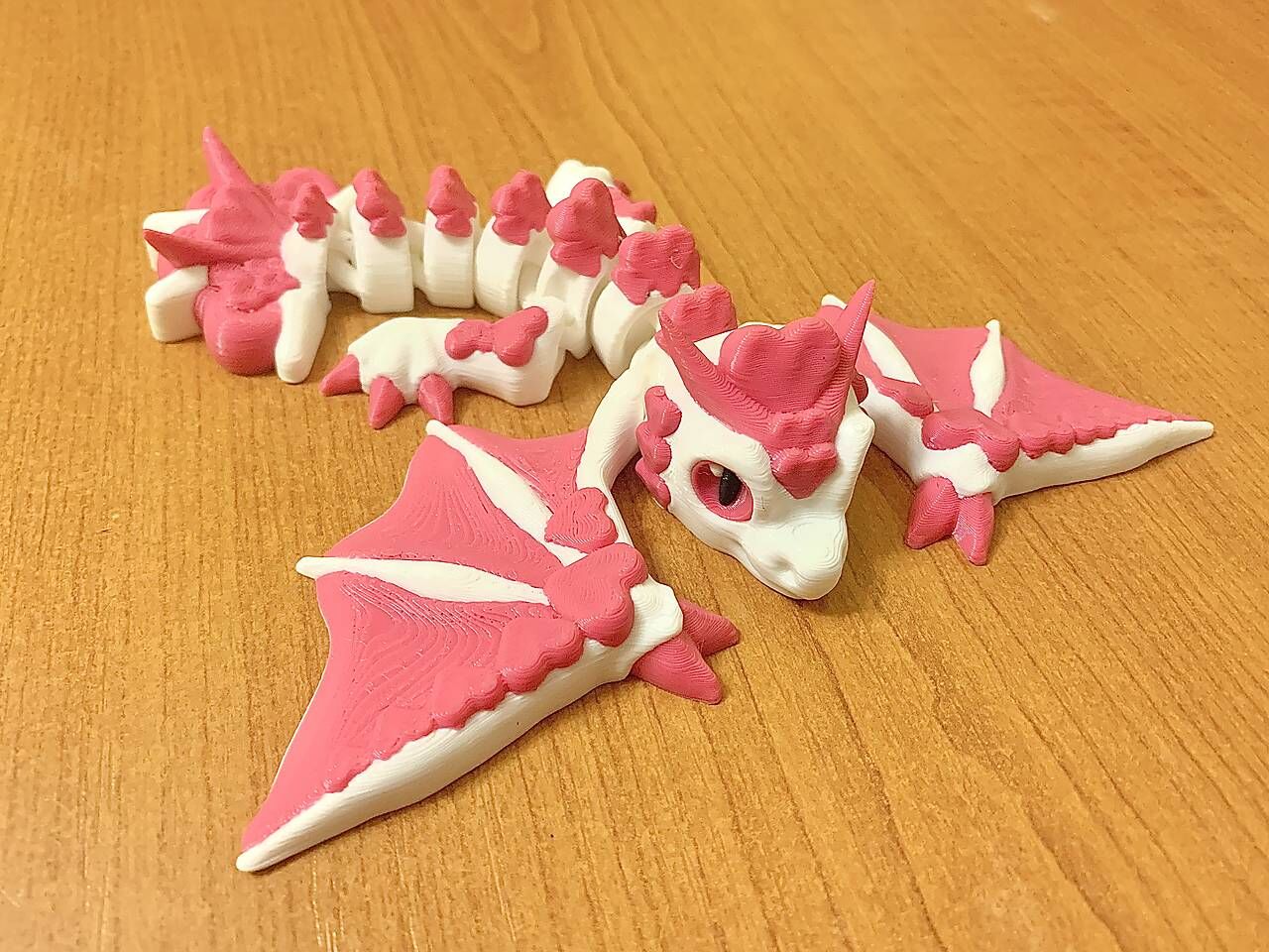 Predám originálneho srdiečkového draka, ktorý je vhodný ako darček k narodeninám alebo ako hračka pre deti alebo ako štýlová dekorácia do izby, kancelárie, na poličku, stôl či na pracovný kútik. Drak je ohybný vo všetkých kĺboch. Tento jedinečný drak je vytvorený pomocou 3D tlače z PLA materiálu a svojim zaujímavým vzhľadom určite zaujme deti aj dospelých.