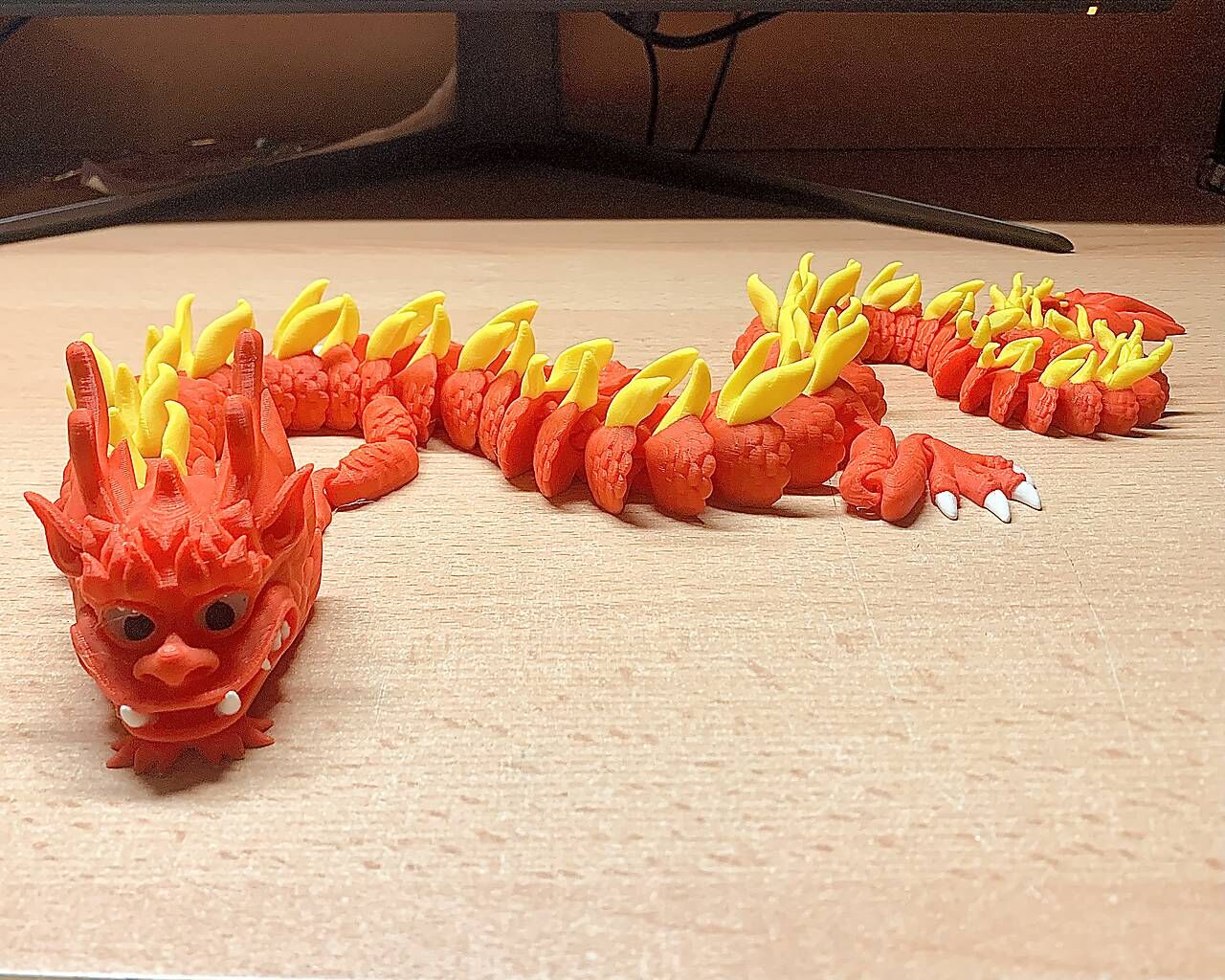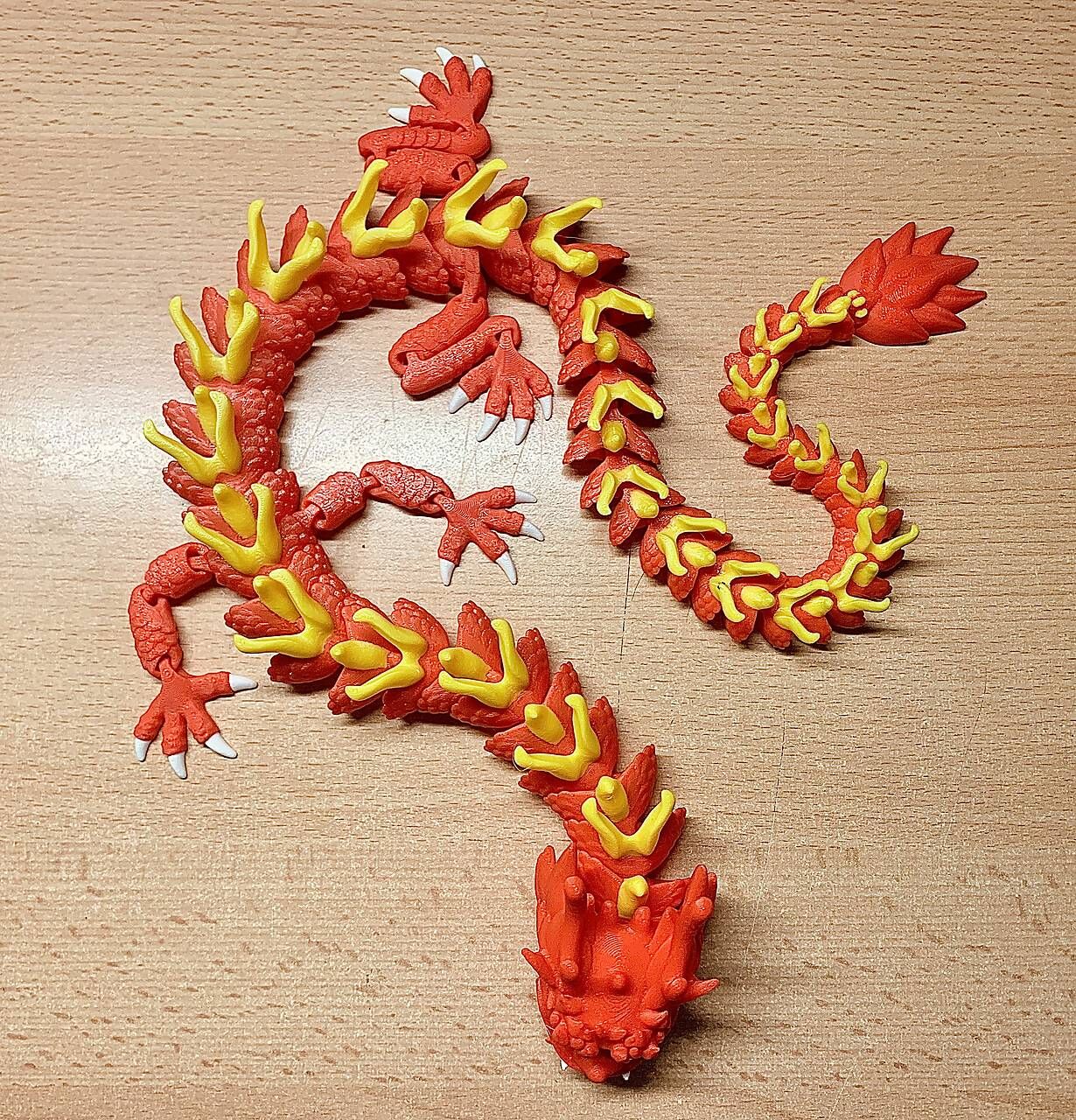 Predám originálneho čínskeho draka, ktorý je vhodný ako darček k narodeninám alebo ako hračka pre deti alebo ako štýlová dekorácia do izby, kancelárie, na poličku, stôl či na pracovný kútik. Drak je ohybný vo všetkých kĺboch. Tento jedinečný drak je vytvorený pomocou 3D tlače z PLA materiálu a svojim zaujímavým vzhľadom určite zaujme deti aj dospelých.