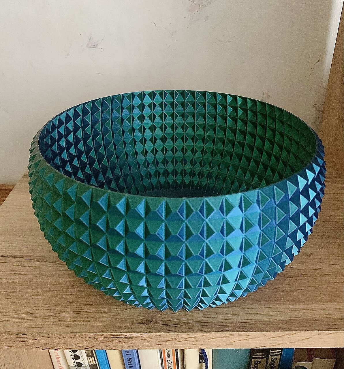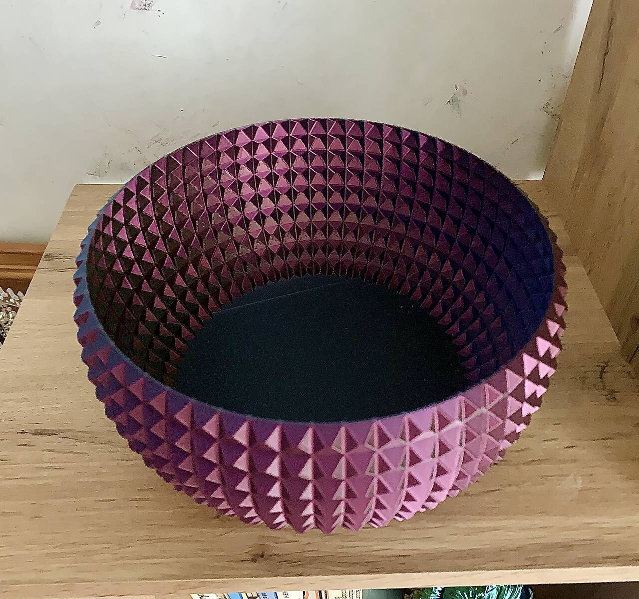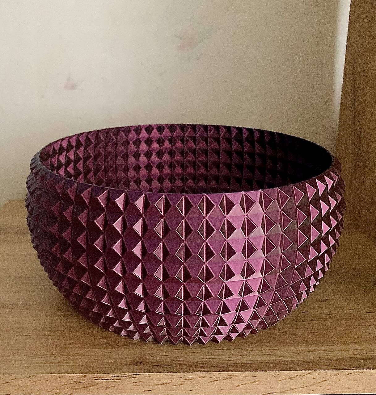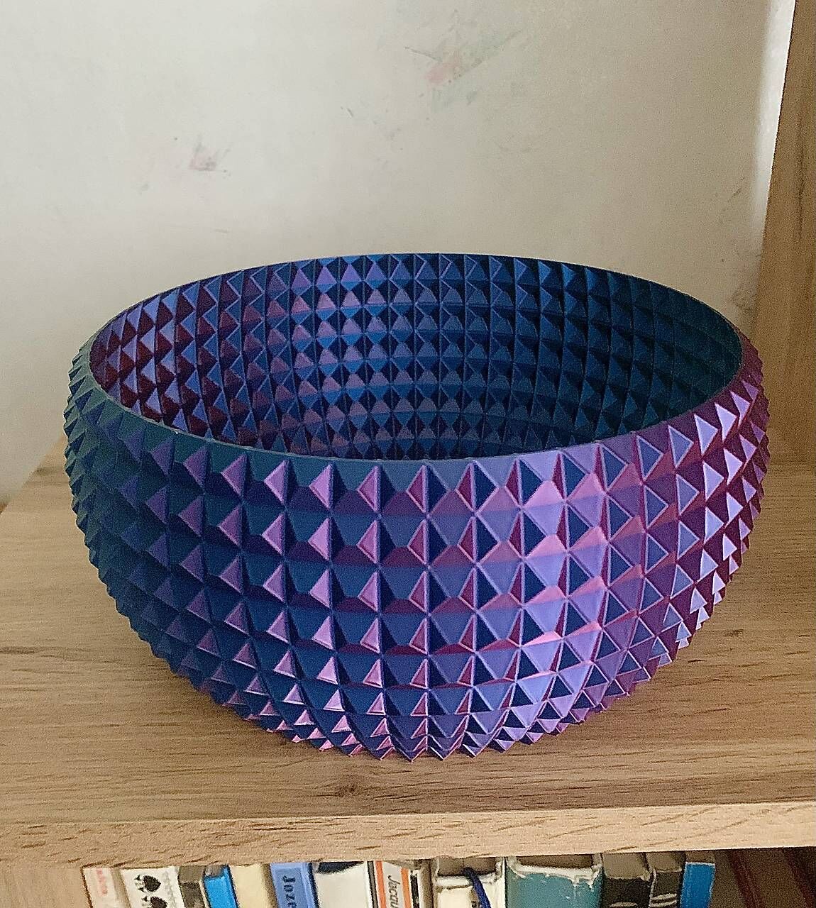 Každá strana misky má inú farbu. Vyrobená je z 3D tlače z PLA materiálu.