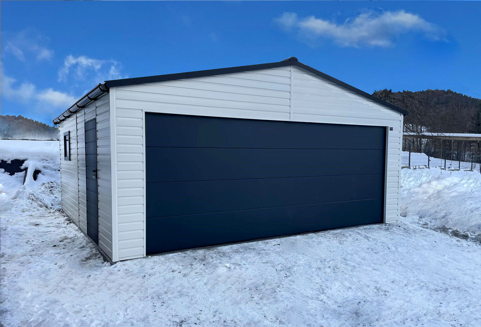 Garáž 6m x 6m vyrobená z akrylového plechu. Farba: biela