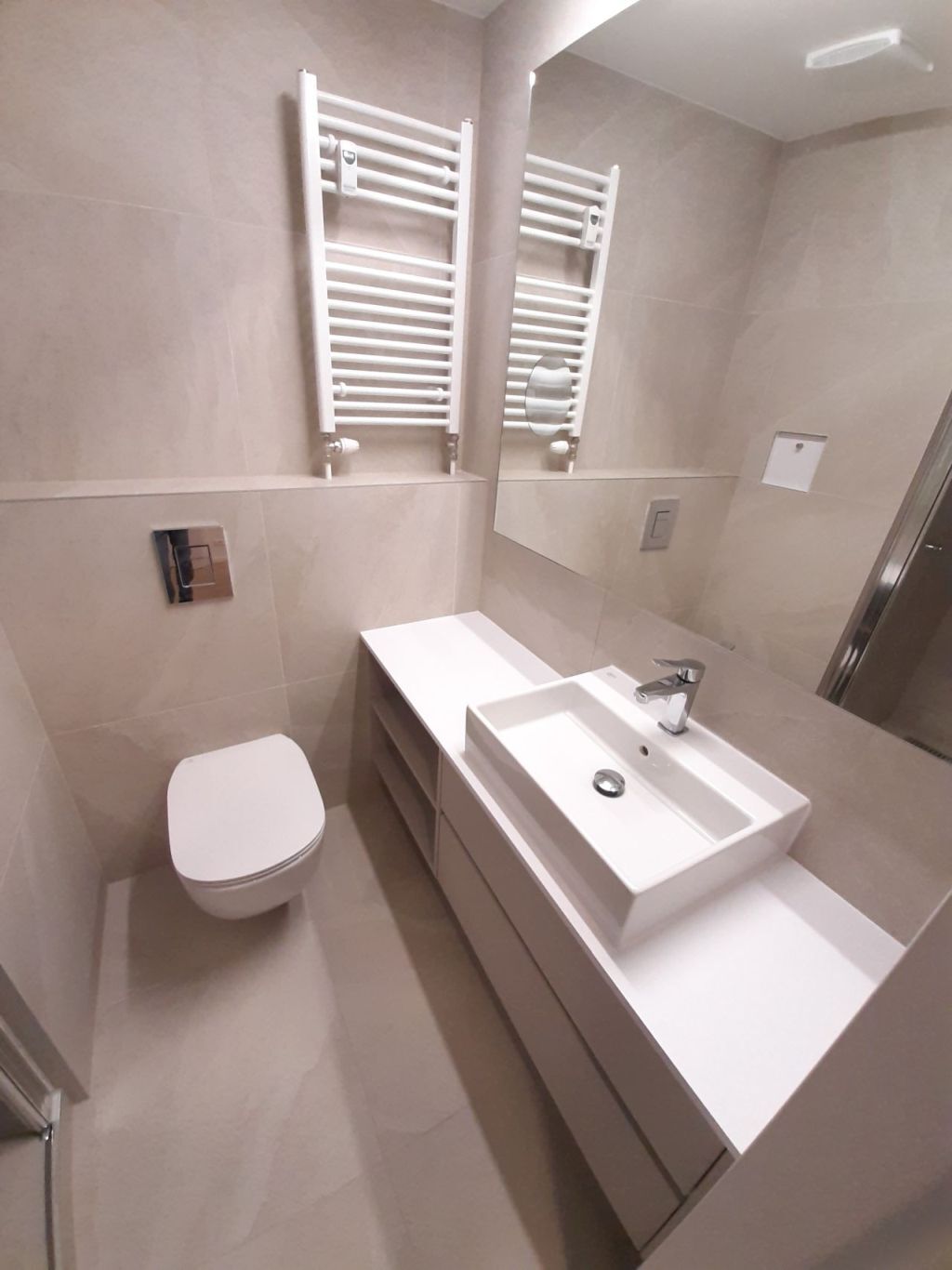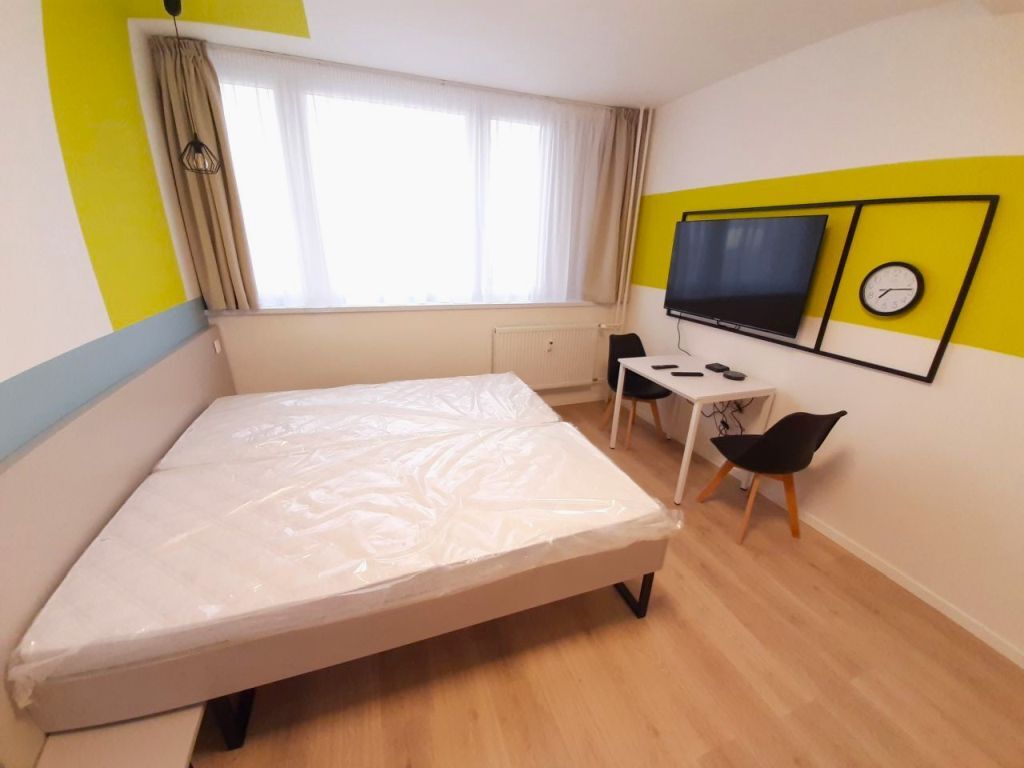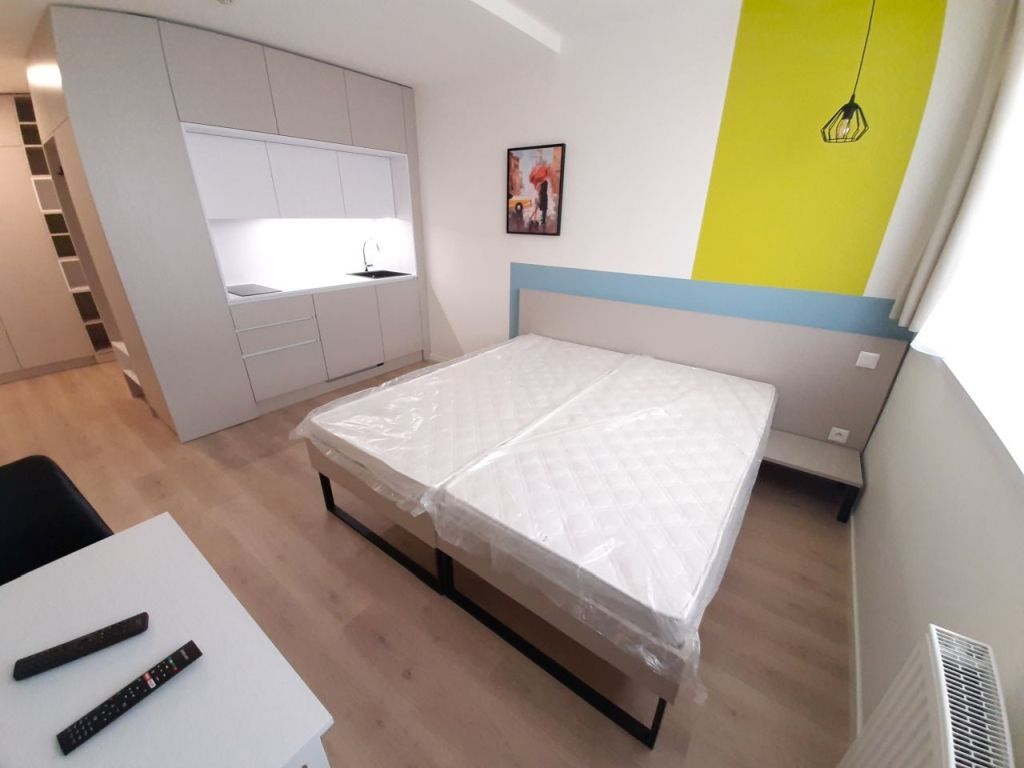Prenajíma sa zariadený: vo vstupnej chodbe sú umiestnené vstav. skrine, v izbe spojenej s kuch. časťou je SMART TV, vstav. nábytok na mieru, jedálenský stolík so stoličkami, kuch. linka so indukčnou varnou doskou, mikrovlnka, zabudovaná chladnička, zabudovaná práčka, dvojposteľ, vstav. skrinky.........