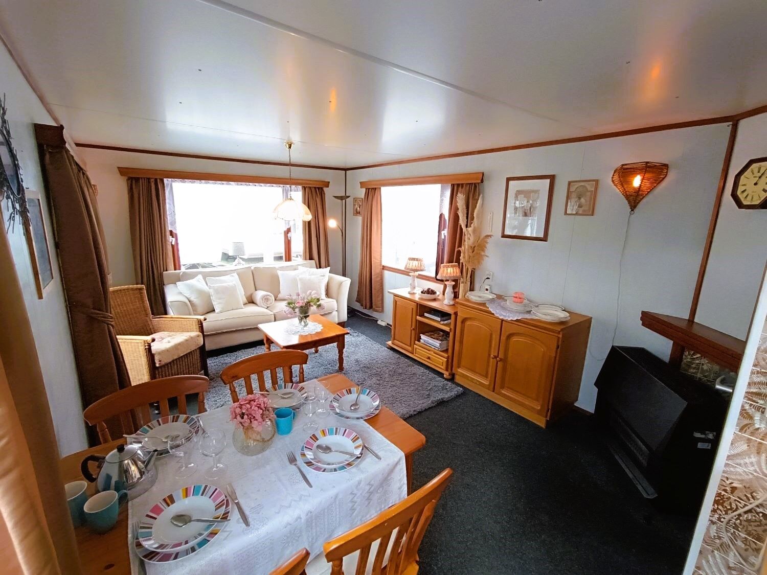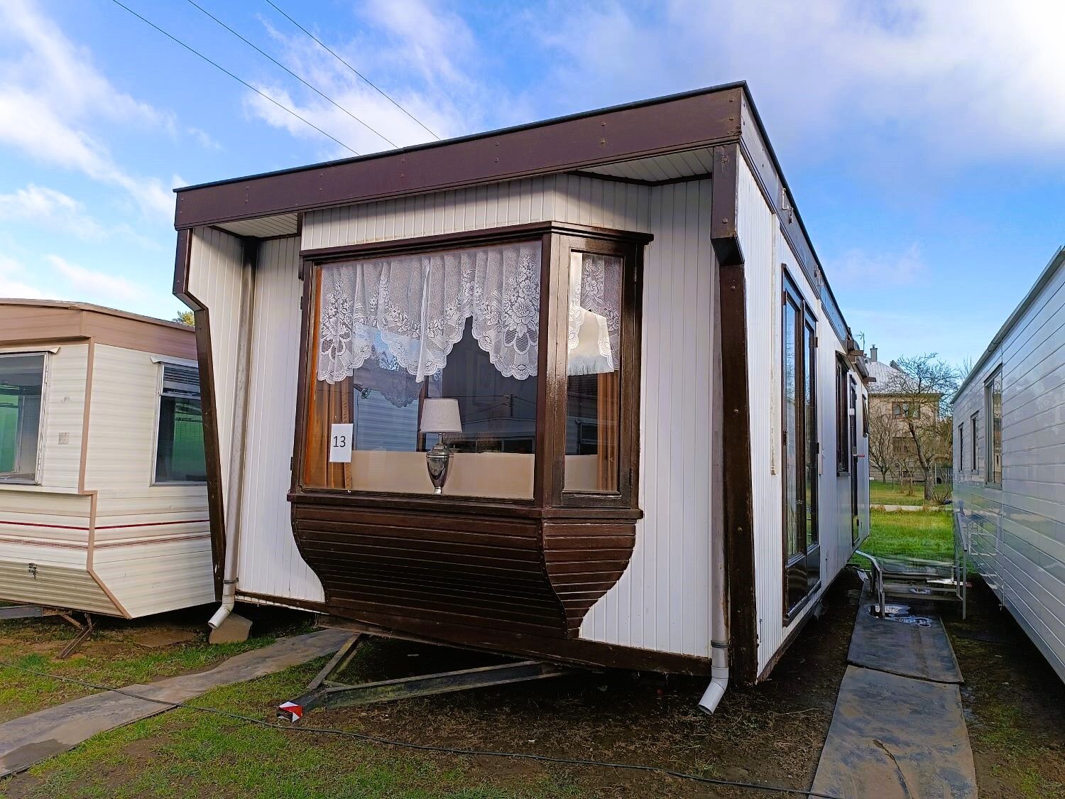 Útulný mobilný chalet vhodný na celoročné bývanie aj rekreáciu. Vonkajšie plastové obloženie zabezpečuje jednoduchú údržbu a dlhú životnosť. Chata má dva samostatné vchody, drevené okná s jednoduchým zasklením a podlahu pokrytú kobercami po celej ploche.
