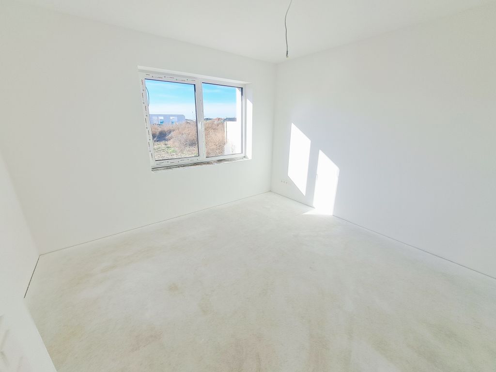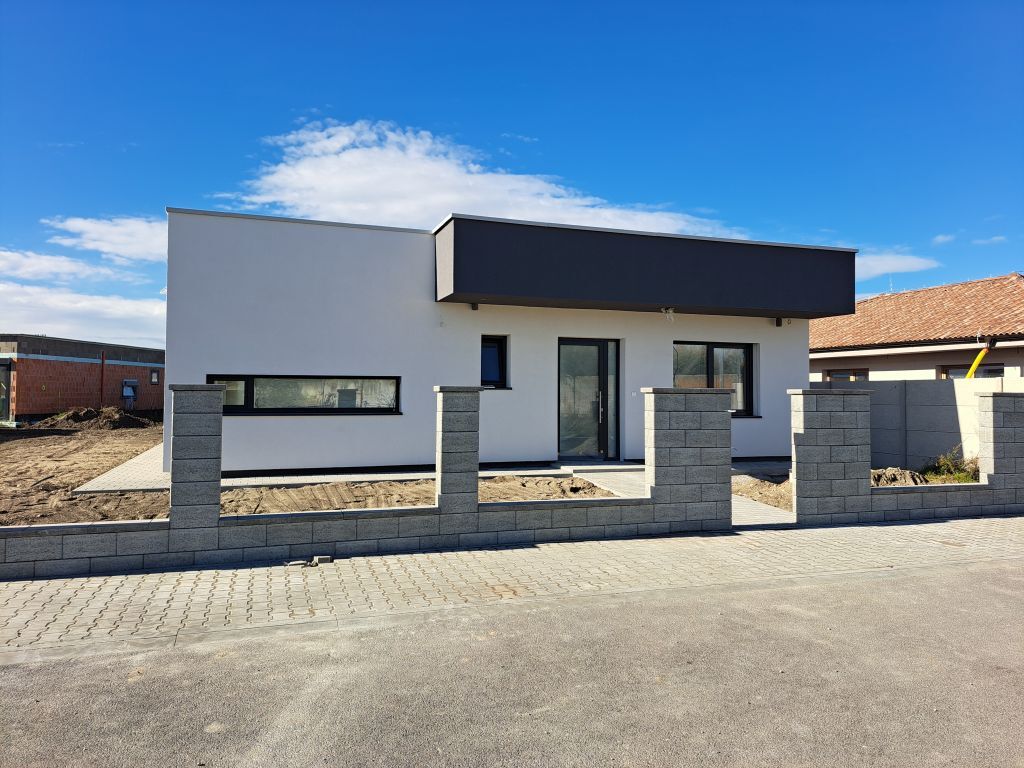 Predaj novostavby 4i rodinného domu v obci Tomášov, Okružná ul. Dom je postavený na pozemku o veľkosti 630 m2, zast. plocha 126,93 m2, úžitková plocha 107,43 m2, terasa 19,50 m2. Dispozícia domu: vstupuje sa cez predsieň do chodby, z kadiaľ sú prístupné všetky obytné miestnosti rodinného domu. Z predsiene je prístup aj do WC a technickej miestnosti. Z chodby je prístupná denná časť, obývacia miestnosť s kuchyňou na jednej strane a na druhej strane je spálňa, druhé WC, kúpeľňa a na konci chodby dve izby. Z obývacej miestnosti je prístup na terasu. Dom je napojený na prípojky elektriny, vody a kanalizácie, steny sú murované z tvárnic HELUZ, zateplené tepelnou izoláciou, strop nad 1.NP bude tvorený stropným systémom PREMACO, strecha plochá so sklonom, vykurovanie objektu je riešené elektrickým podlahovým kúrením, predpríprava na klimatizáciu, krb, vonkajšie žalúzie....... Pozemok bude oplotený, pred domom budú vybudované 3 park. státia. Dom je možné dokončiť do štandardu a je tiež možné zrealizovať stavbu garáže aj bazéna.