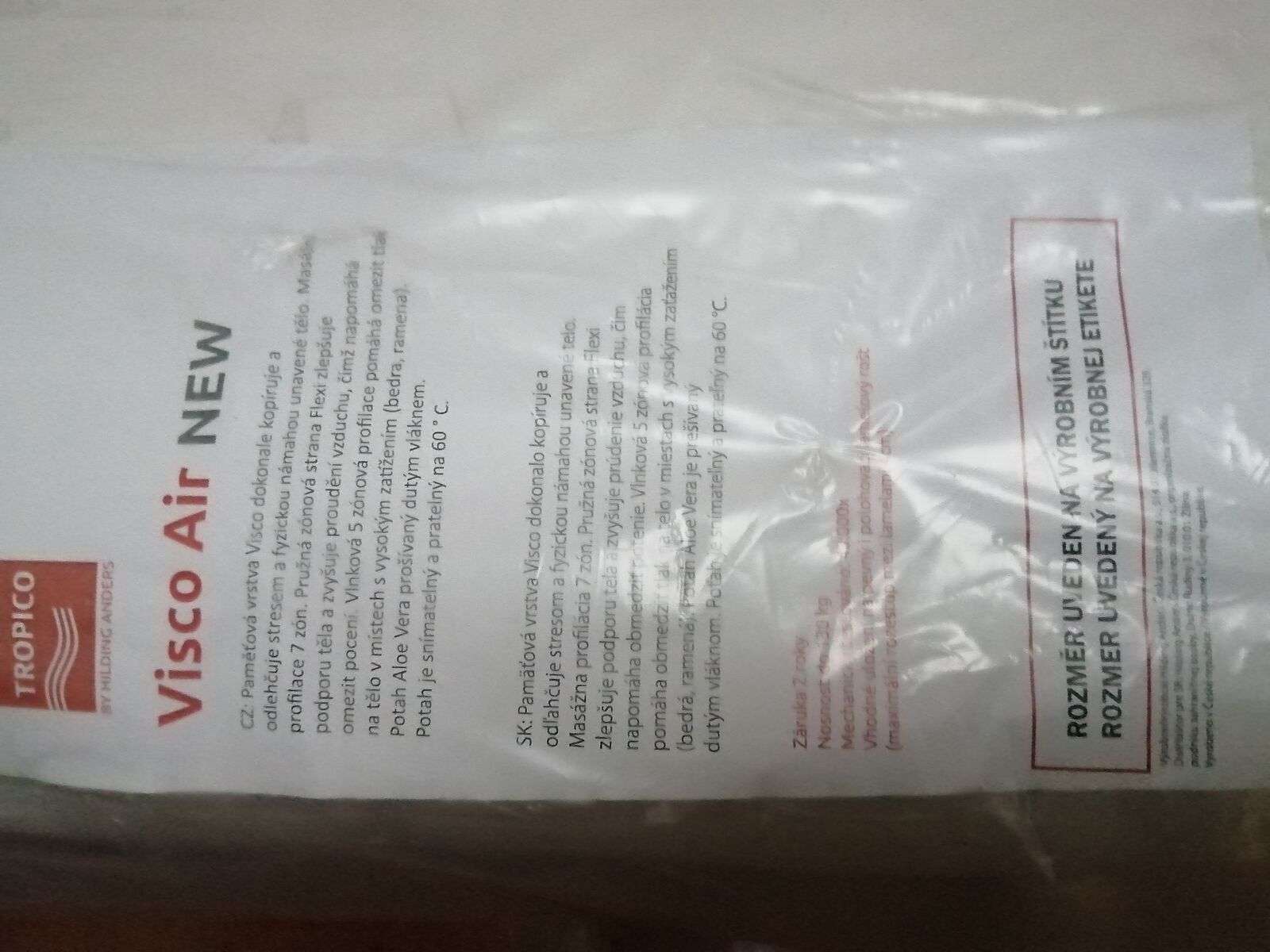 Predám nepoužitý matrac VISCO AIR NEW hrúbka 18 cm ,šírka 90 cm ,dĺžka 190 cm , pamätová pena, 7 zón, vzdušný ortopedický, nosnosť 130 kg v záruke dodaný na objednávku. Cena : 79,- euro Osobný odber