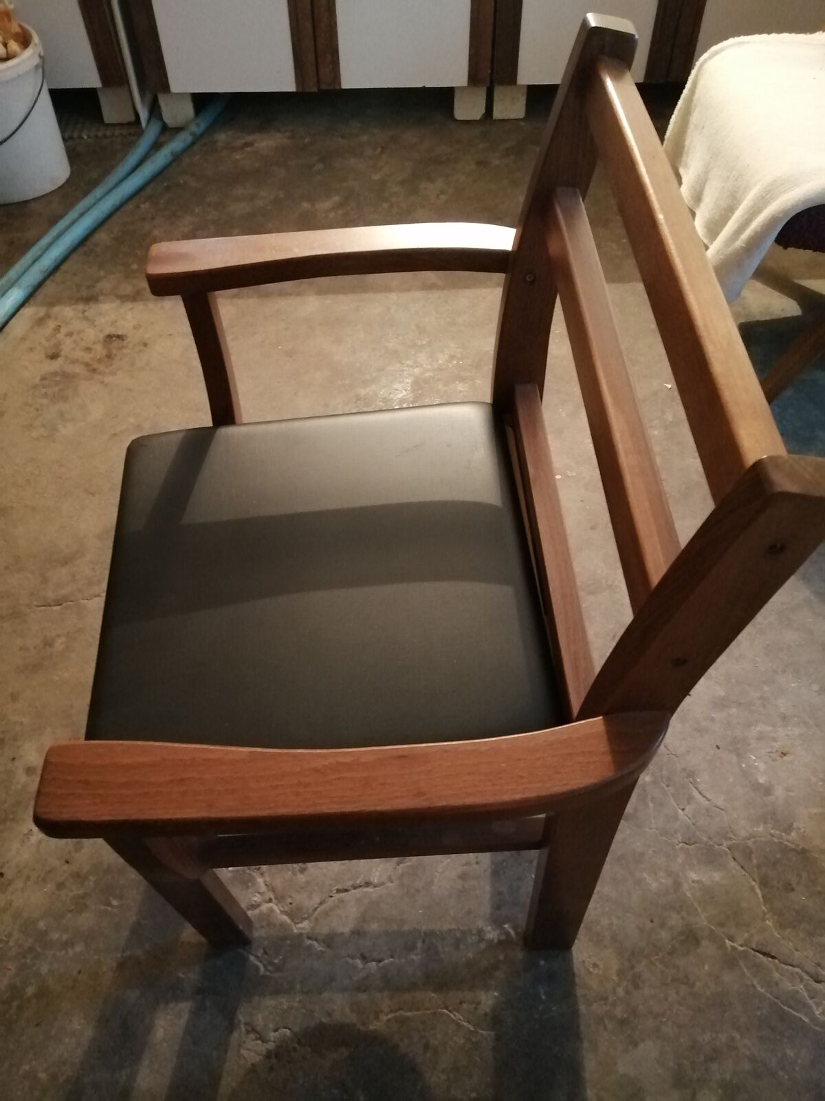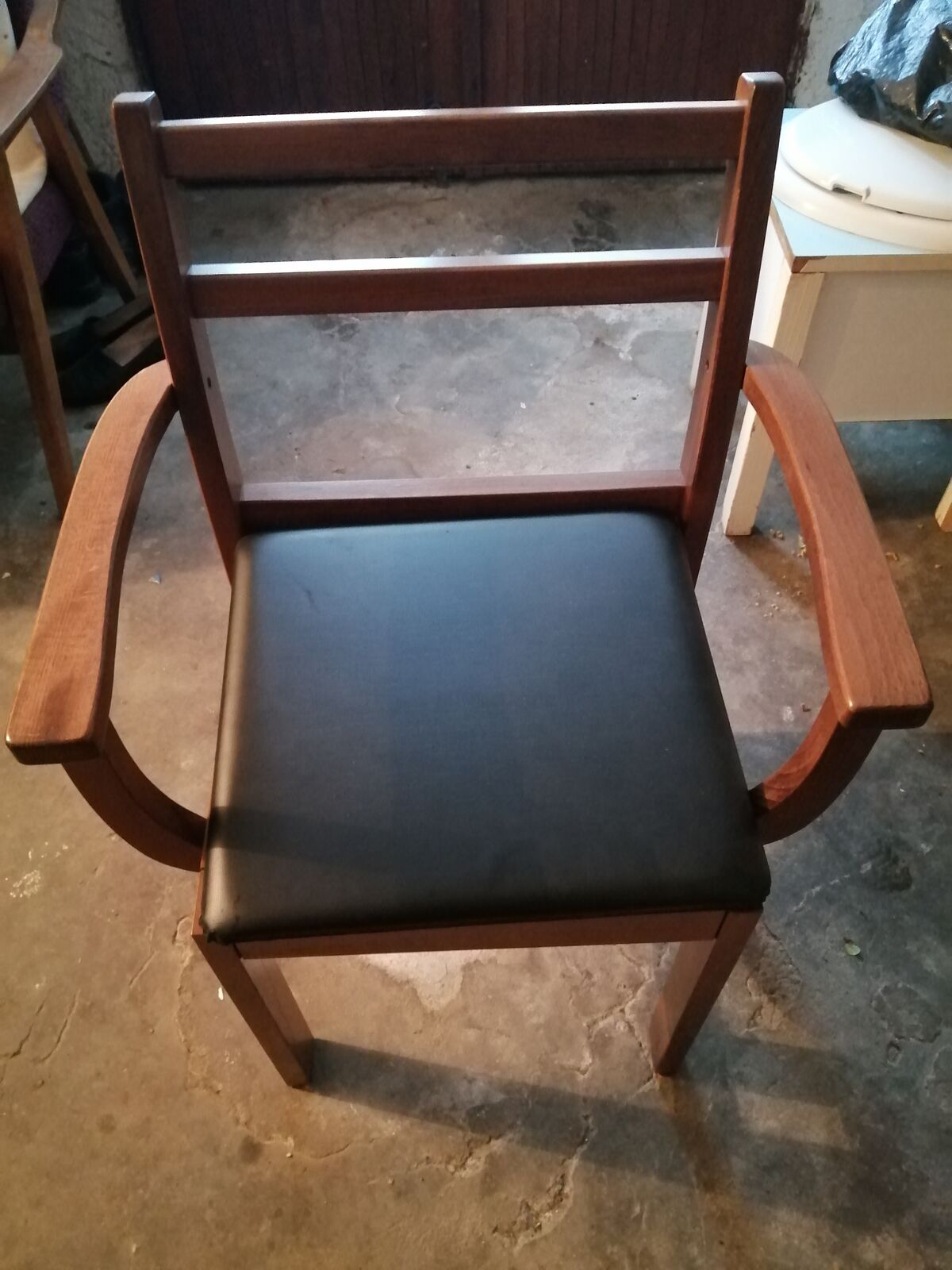 Predám toaletné drevené stabilné tmavé kreslo , nosnosť 115 kg. Rozmery dĺžka 42 cm, šírka 54 cm, výška 80 cm, kreslo málo použité.