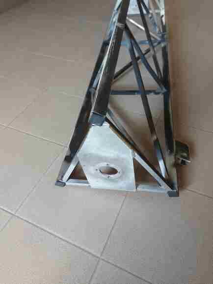 Predám Duralový svařovaný na zakázku robený příhradlový stožiar včetně zavetrávákú 3 ks ,od vrchu k nohám do konce těchto oporných nohou,také duralové a pevné 10mm silné duralové základny 150CM dlouhé nohy 4 ks.Středem stožiáru prochází 50mm silná trubka to je: ,konec trubky v rotátoru,který je umístěný na oporné 10mm silné desce a druhá část vyčnívá po průchodu ložiskem asi 50cm nad stožiar . Trubky jsou součástí dodávky . K dodávce je i 4m dlouhá 50mm silná trubka. Rotátor není v ceně,ani v nabídce.Celý smontovaný stožiar ako skládačka je sklopný přes jednoduchý silný pant zabudovaný v základně a část na konstrukci stožiaru. Spojení pantu je pomocí zasůvací 8mm průměru ocelové tyčky.V Případě zájmu pošlu podrobnější foto.Oporné ložisko s domčekem není v ceně ani není součástí dodávky.Cena stožiaru je 400€.Pouze osobní odvoz.Po velikém přemlouvání prodám i nový rotátor - ten nejvýkonější s ovládačem a ložisko s domčekem. Používáno 1 týden. Pro silné odrazy signálů a členitost domů nelze použít v mém QTH.