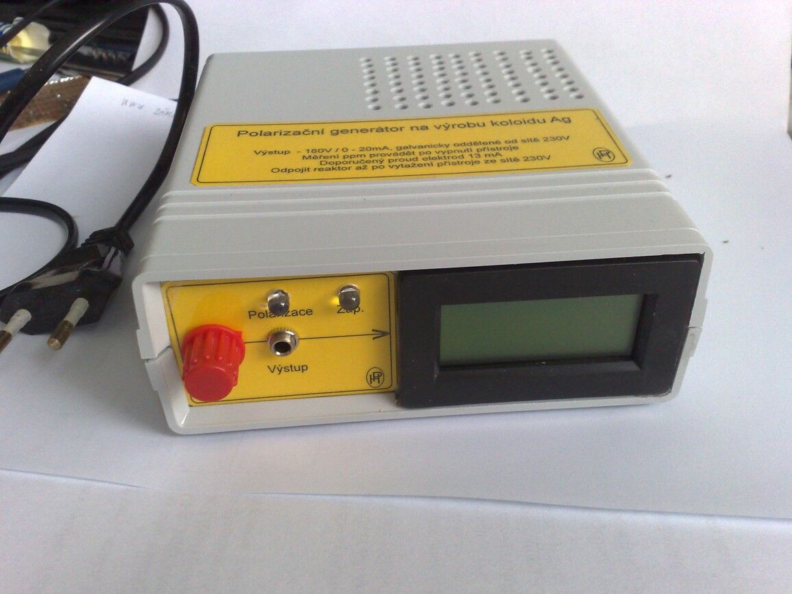 Vyrábíme polarizované generátory koloidního stříbra i s reaktorem do 20ppm .Měřič ppm dodáváme v ceně přístroje. Návod na výrobu dodáváme,velmi jednoduché .Léčíte celou rodinu i vašeho domácího miláčka.Předvedu ,musíte se tel.objednat.Reaktor o velikosti 0,6L se stříbrnýma elektrodama o ryzosti 99,99 pomocí specielní elektroniky molekulárně naváže stříbro na molekuly vody a během 2h likviduje viry a bekterie v těle..Nikdy nebudete mít chřipku ani jiné virové onemocnění ,viz internet.Již 15 let se tím léčím a celou rodinu .manželce jsem vyléčil chronickou hnisavou anginu.Je to síla!!! Kontaktujte mě ,pošlu fotky .