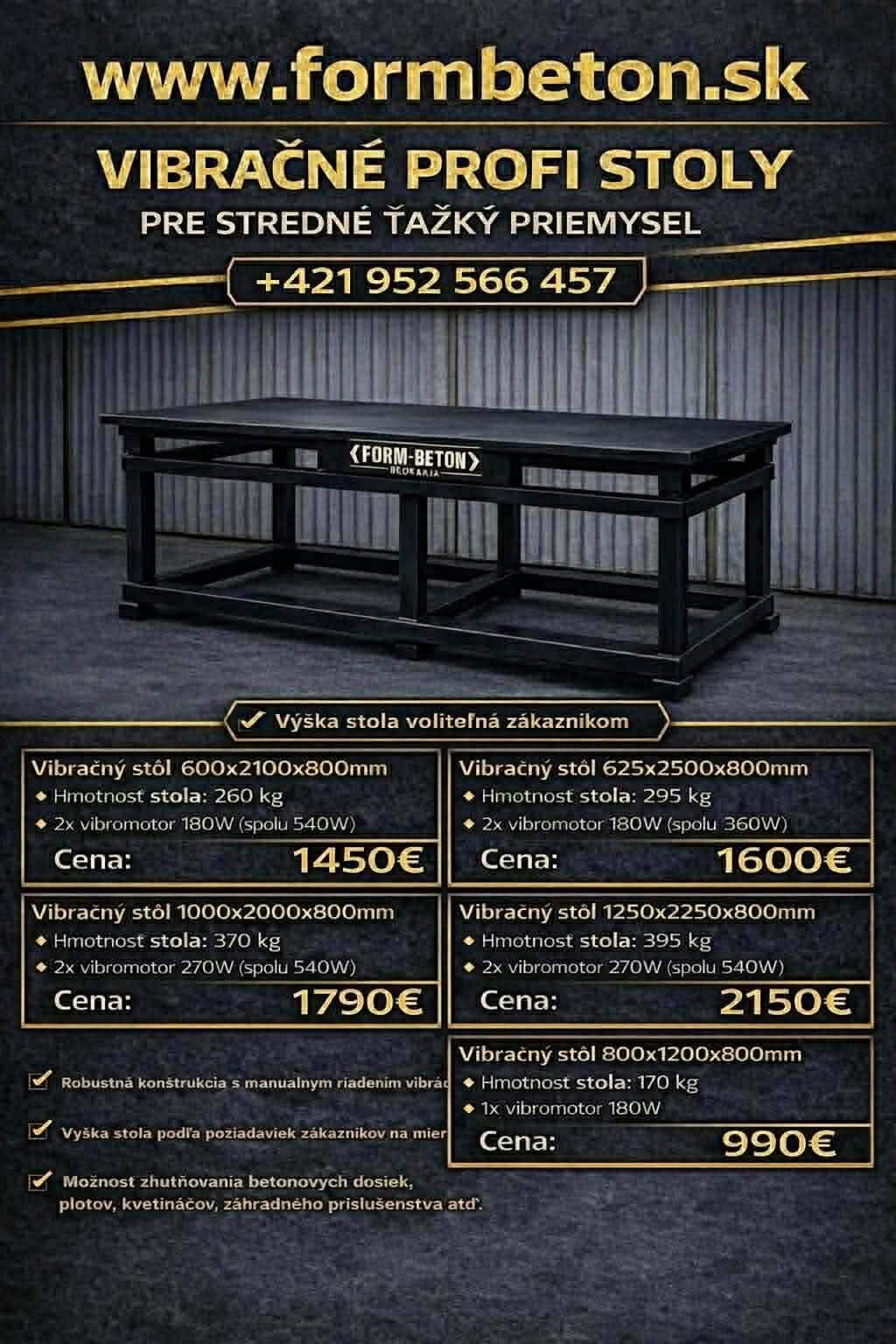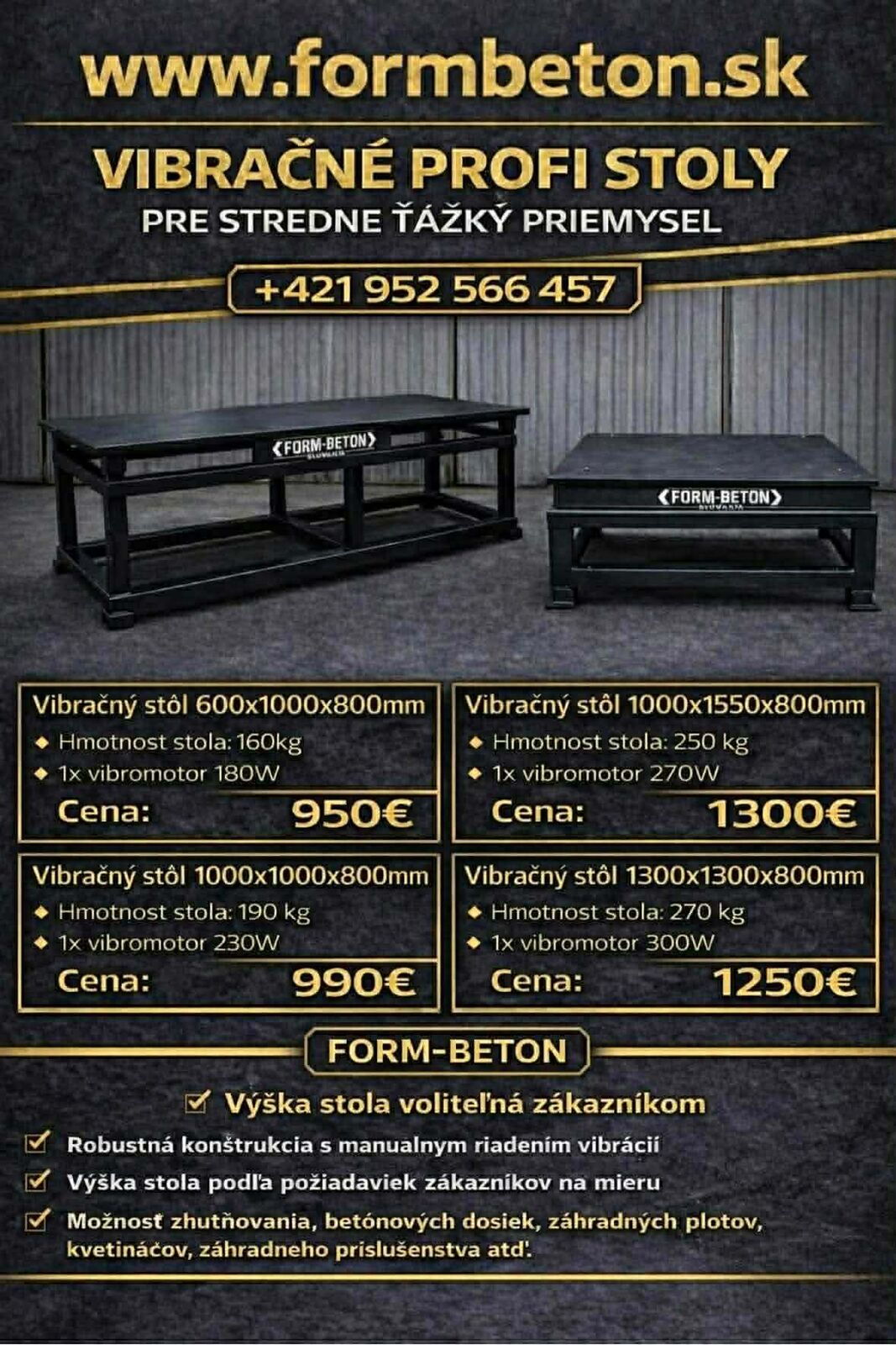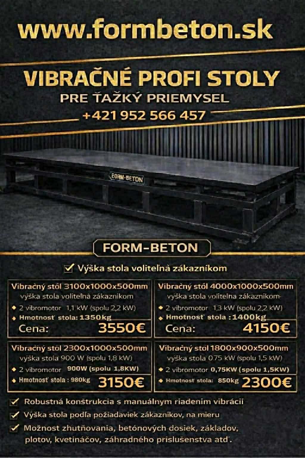 VIBRAČNÉ PROFI STOLY – FORM-BETON
