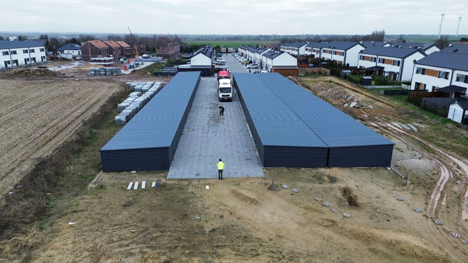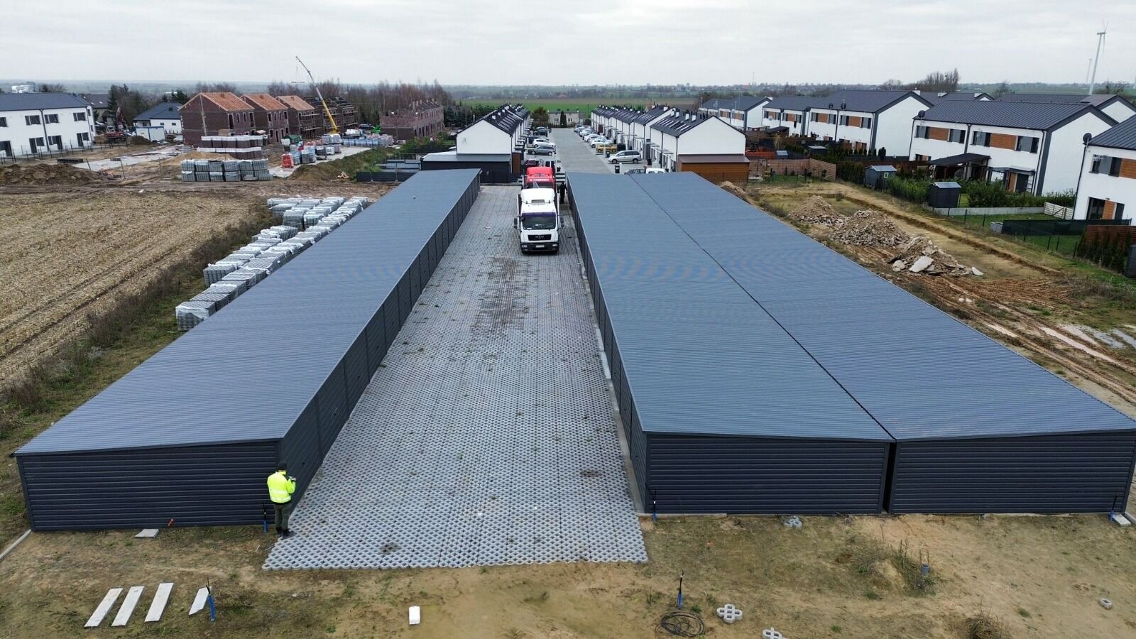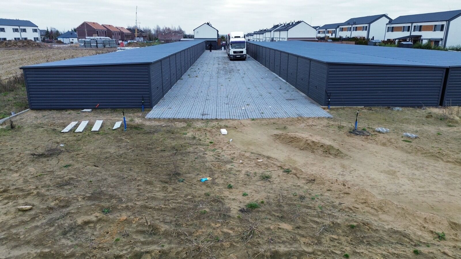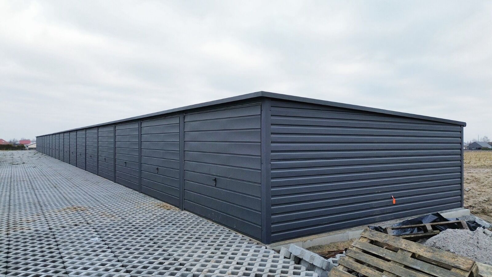 60 garáží (v troch radoch po 20 garáží, prepojených stenami)