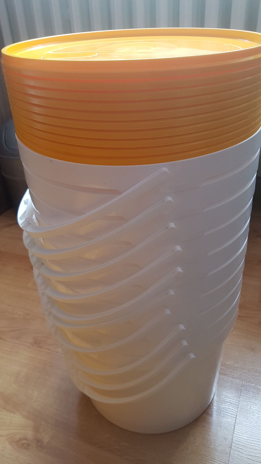 Predám vedro (biele) 10L, predám viečko na vedro 10L (žlté),aj osobitne, čiže 1 vedo (1,50€), viečko (0,50€). Je možné zakúpiť aj veľké balenie 10 ks vedrá (10L)+ 10 ks viečok (10L), za výhodnú cenu 19,50 eur