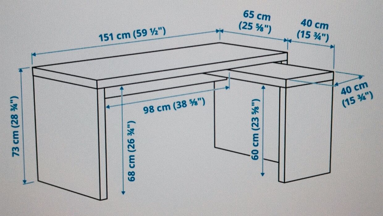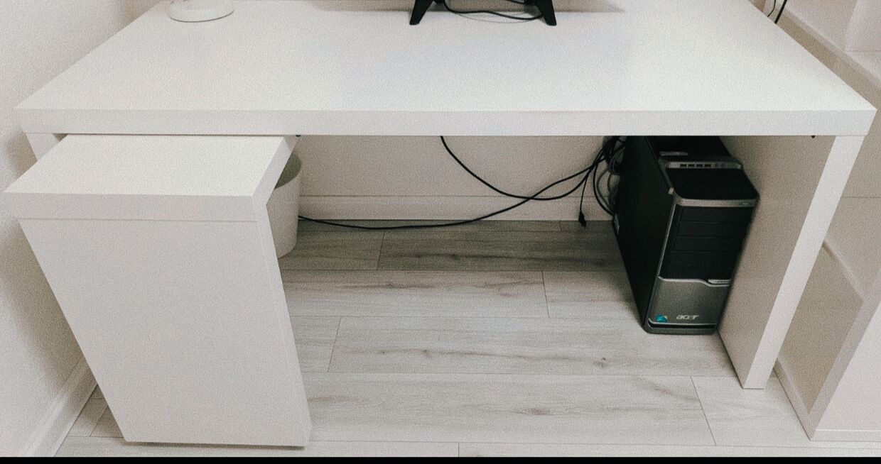 IKEA MALM Písací stôl s výsuvným panelom biely 151x65