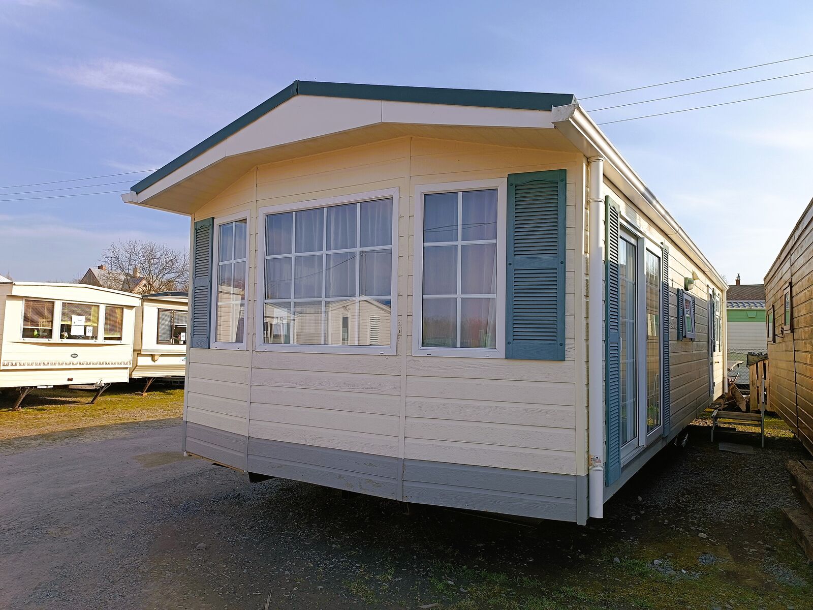 Euro mobilná chata vhodná na celoročné užívanie s rozmermi 12 × 4,1 m. Má sedlovú strechu s plechovou krytinou a kvalitné opláštenie Canexel, ktoré zabezpečuje dlhú životnosť a pekný vzhľad.