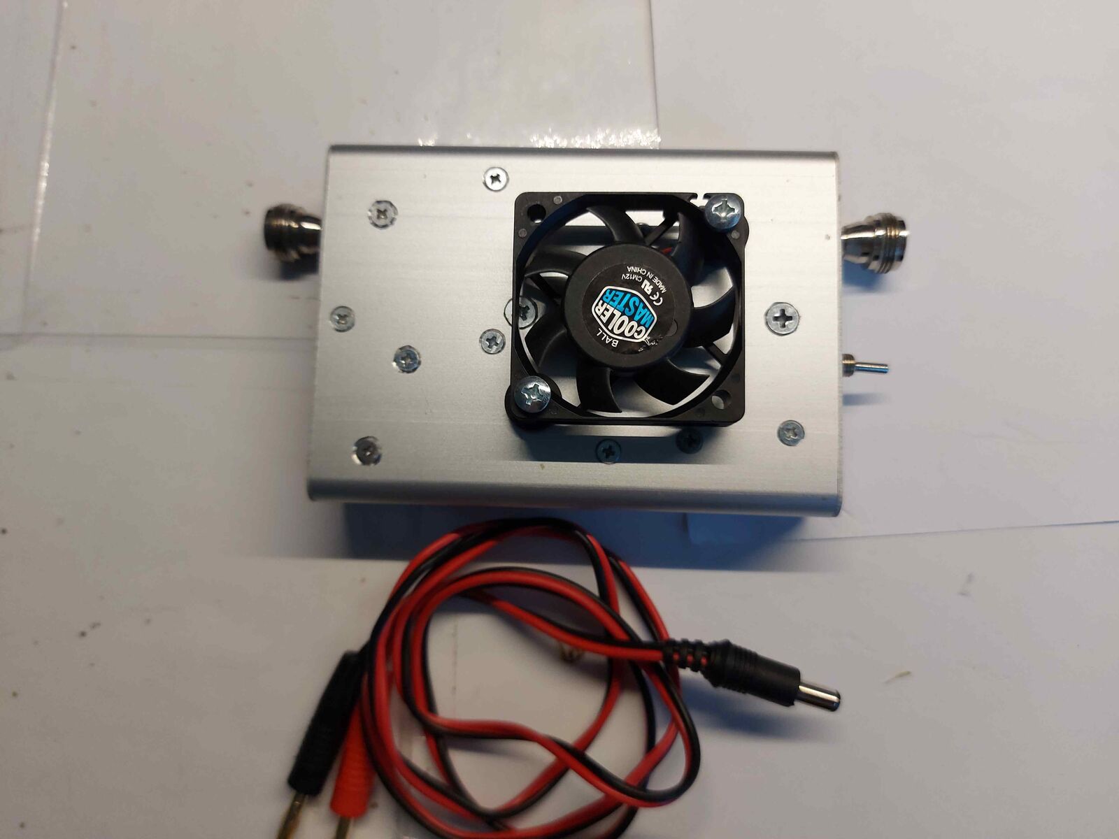 Malý 25ti watový VF signál z PA . Je osazen Integrovaným obvodem Motorola ,na výstupu je filtr výstupního signálu , a zesilovač pracuje v lineárním režimu ,tedy vhodné i pro signály SSB.Zesilovač má VF vox, který je ovládán z předního panelu. Zasilovač obsahuje i výkonové VF relé na přepínání Vox a bypas.Při příchodu vF signálu na vstup je automaticky sepnuta TX cesta na vysilání .Netreba žádné ovládací kabely.Funkce Bypas je pro průchod signálu bez zesílení .Po skončení vysílání se automaticky přepne na příjem. Na zadním panelu je automatický ventilátor ,který spíná po dosažení nutnosti chladit Integrovaný ovvod.Napájení je externím zdrojem 12-16V .PSW při Bypasu je 1:0,4 .