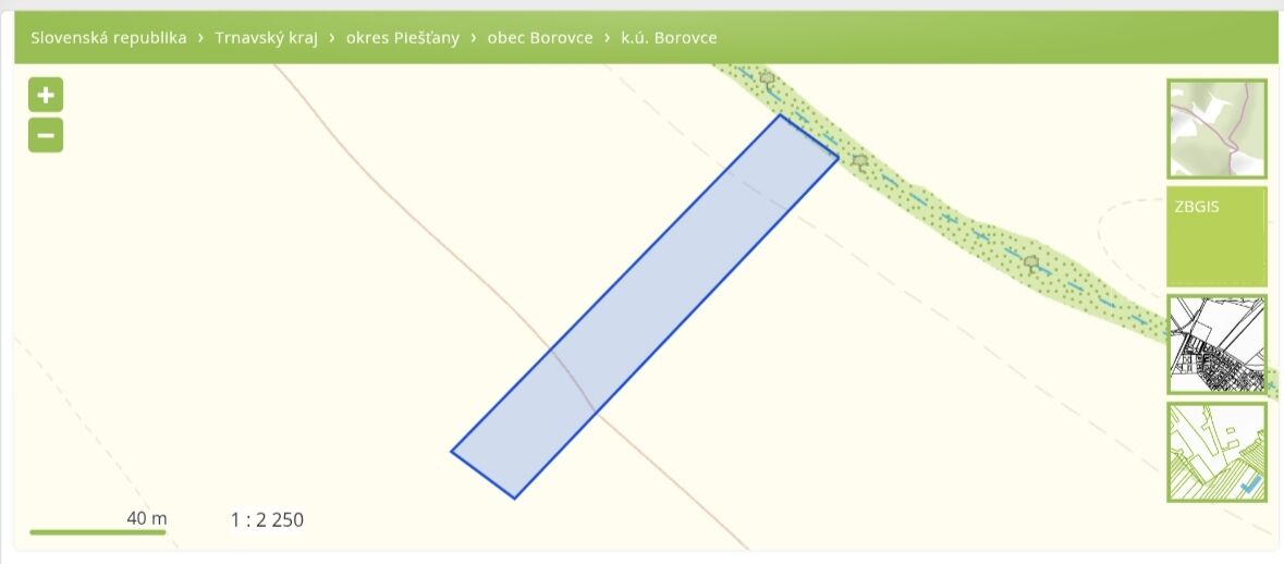 Prodám levně pozemek (pole) získaný v dědictví v Borovcích (okr. Piešťany) o výměře 3.084 m2 využívaný v současné době jako orná půda, cena min. 1,- €/m2.