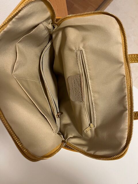 Vnútro kabelky je rozčlenené futrom so zipsami na 2 časti, má viacero organizérov na odloženie dokladov, mobilu, peňaženky a osobných vecí. Kabelka má zvonku zips s úložným priestorom na kľúče a iné.