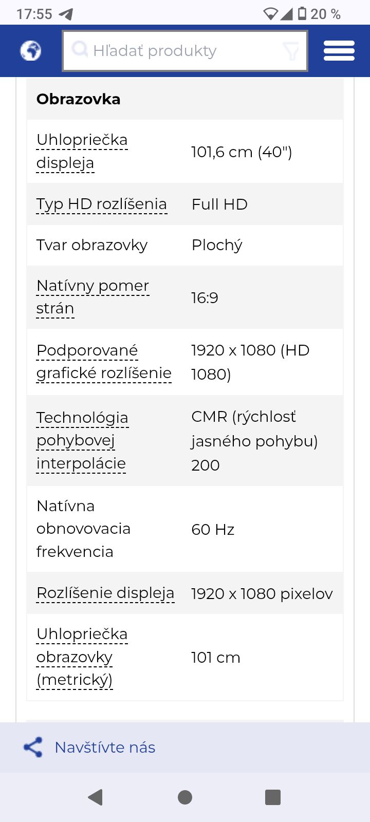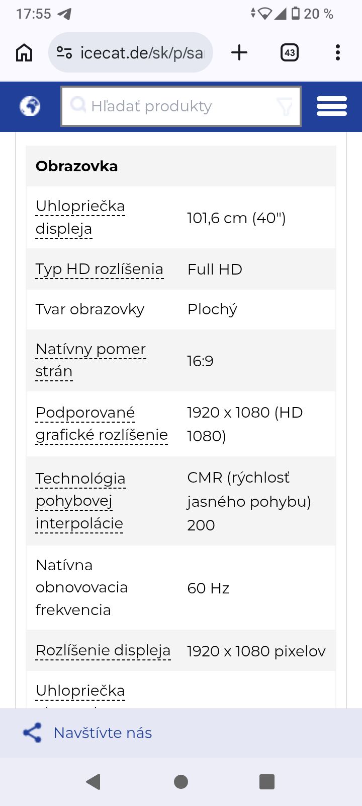 Samsung UE40H6203AW. Uhlopriečka displeja: 101,6 cm (40"), Rozlíšenie displeja: 1920 x 1080 px, Typ HD rozlíšenia: Full HD, Tvar obrazovky: Plochý. Smart TV. Technológia pohybovej interpolácie: CMR (Clear Motion Rate) 200, Natívny pomer strán: 16:9. Formát digitálneho signálu: DVB-C, DVB-T. Wi-Fi, Ethernet / LAN pripojenie. Farba: Čierna.