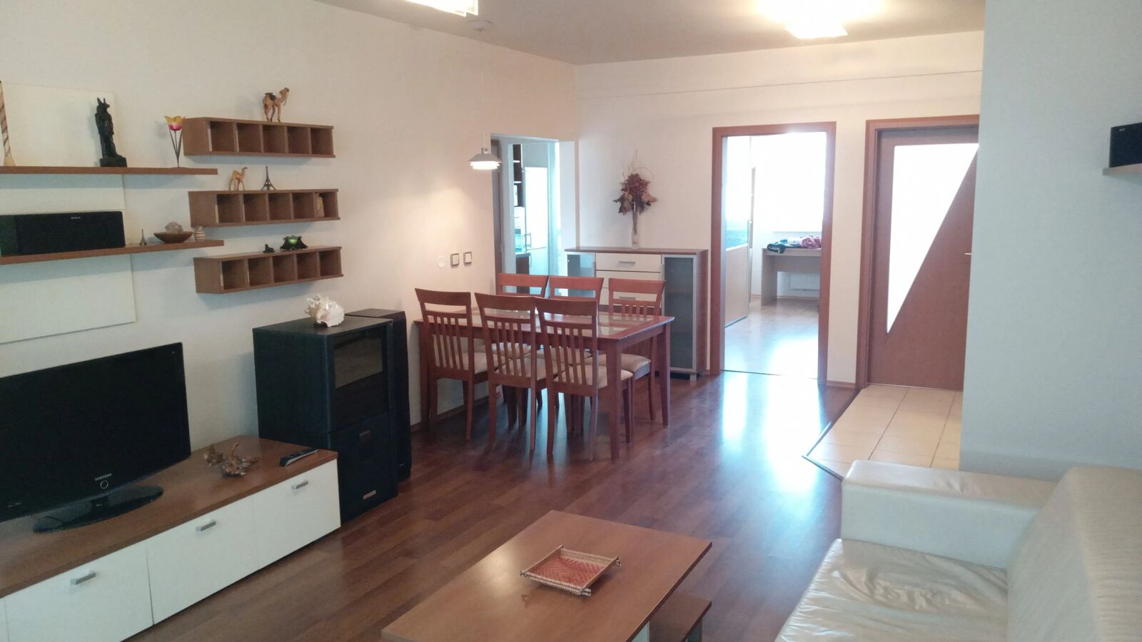 Celková výmera bytu je 84 m² + lodžia o výmere 3,5 m². Byt je kompletne zariadený a prenajíma sa tak, ako je na fotografiách. K dispozícii ihneď.