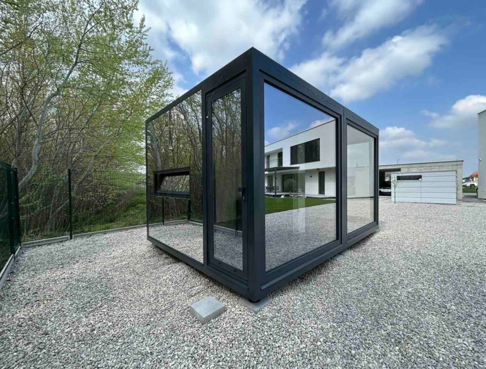 Predám mobilný, zateplený, moderný, dizajnový domček z ocele, ku ktorému nepotrebujete stavebné povolenie ani základovú dosku. Dá sa využiť ako home office, záhradný domček, hosťovský, sauna, fitko, dielňa, kaviareň, predajňa, showroom. Dizajnové ubytovanie, mobilné bývanie kdekoľvek. Oceľová prenosná konštrukcia, kvalitné hliníkové okná, elektrické podlahové kúrenie a iné. Cena za jednobunku od 9 900€